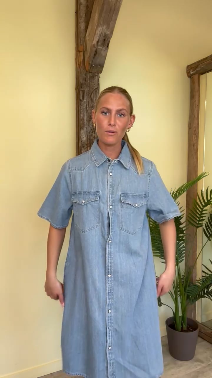 En sød kjole i denim look fra Sisters Point er kommet til denne sæson. Den er lys i farven og kan nemt styles til hverdag til et par sneakers. Derudover er den med trykknaplukning og derfor nem at tage af og på. Den findes også i en mørk blå.