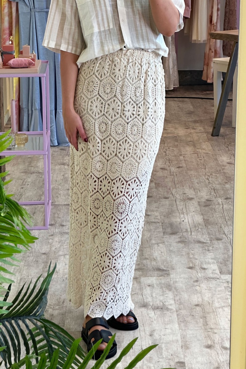 En fin nederdel i et hæklet udtryk er kommet til denne sæson. Dene r foret så den ikke er gennemsigtig og har elastik i taljen. Derudover er den fra Sisters Point som har lavet et par nemme basis toppe der nemt kan styles til denne underdel.