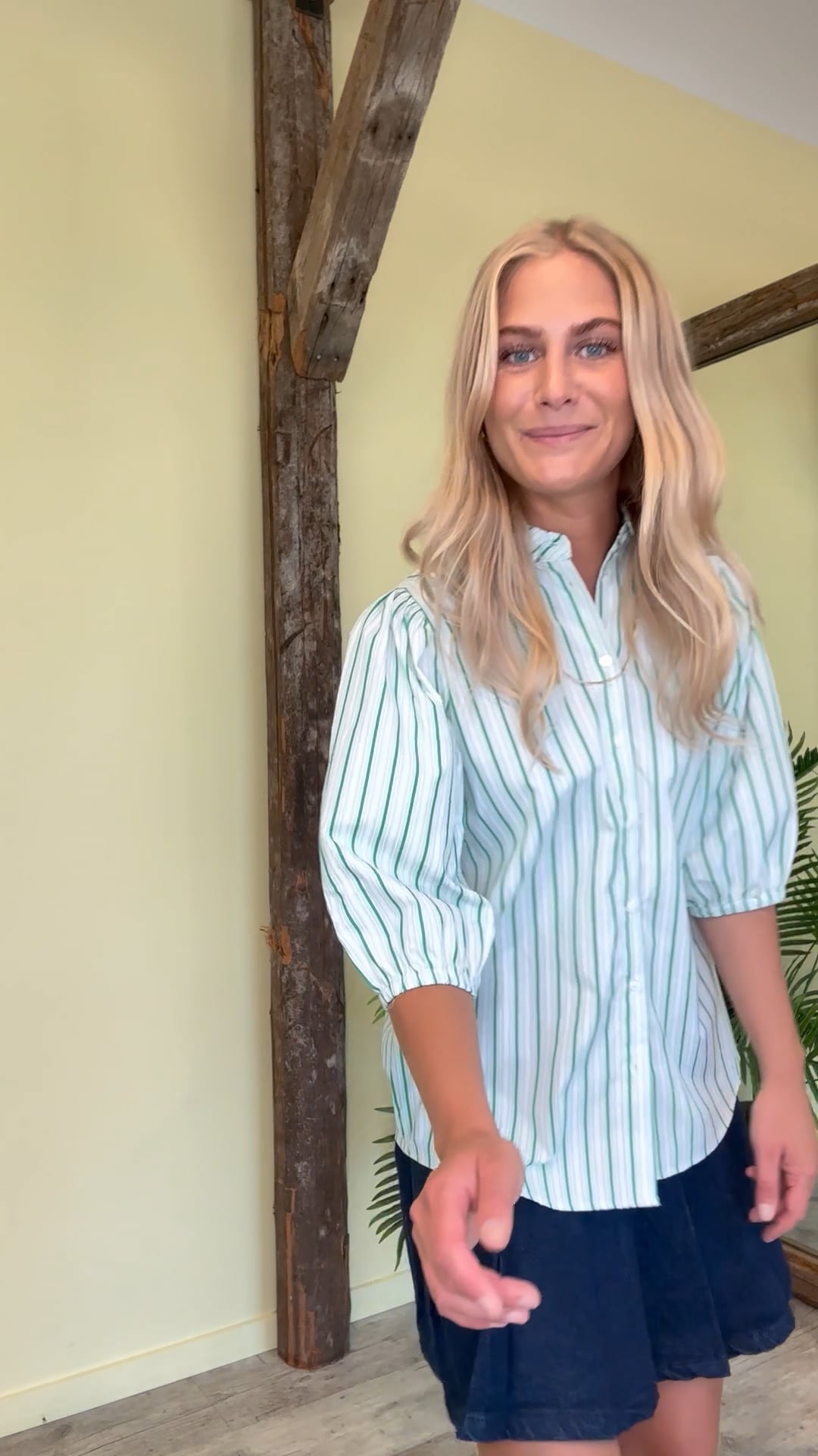 En fin nederdel fra Sisters Point er kommet i en skøn denim kvalitet og med dette plisseret look. Den er med elastik i taljen og lukkes i siden med en lynlås. Den er nemt til hverdag med en skjorte.