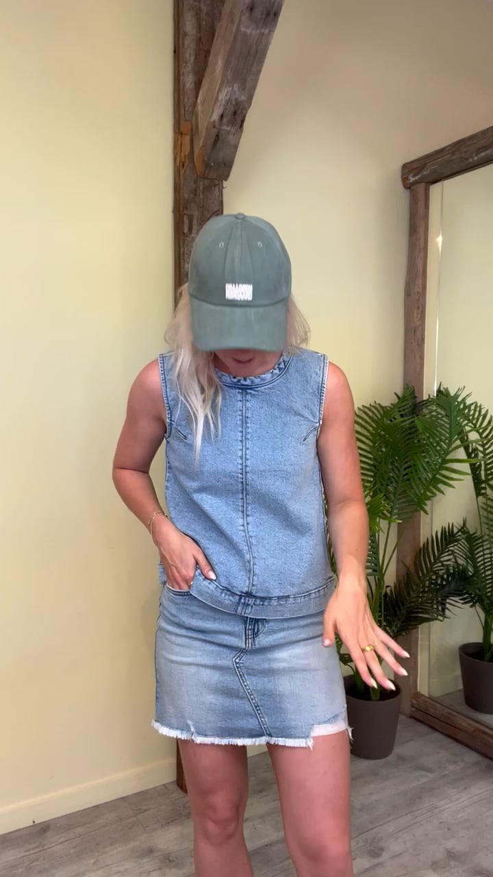 Denim nederdel fra Sisters Point i en lys denim vask med de rå detaljer. Nederdelen er i et strækbart materiale og er med lommer bagpå. Findes også i en grå vask.
