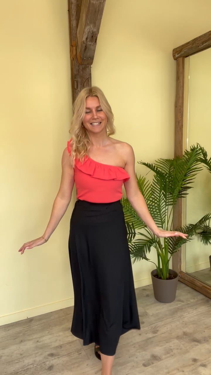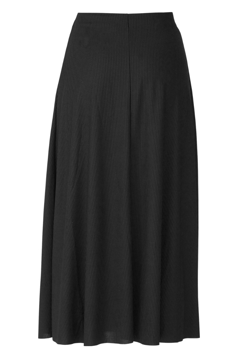 En sød nederdel i en rib kvalitet fra Sisters Point. Den er sort og har elastik i taljen som sidder på indersiden og derfor ikke synlig. Den er i A snit og derfor sidder den ikke tæt og er dejlig behagelig at have på hele dagen.