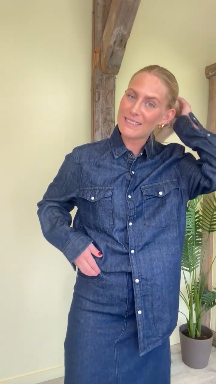 Cool denimskjorte fra Sisters Point. Skjorten er med retrolignende knapper hele vejen ned samt to brystlommer. Den er løs i paformen, men vi anbefaler at tager din almindelige størrelse. Skjorten kommer også i en lys denimkvalitet.