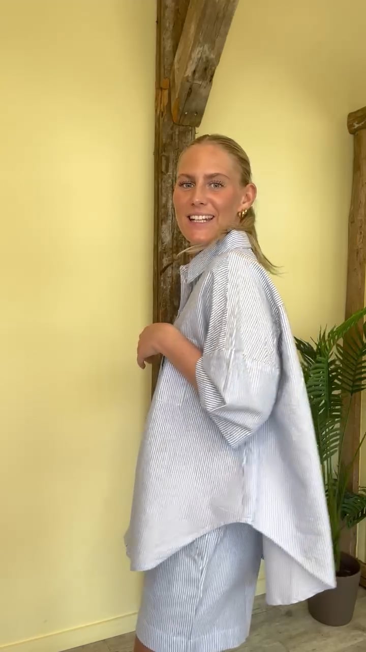 En fin skjorte i en løs pasform fra Sisters Point er kommet med striber i hvid og blå. Den er nem at style til hvad som helst, da striber passer til alt. Der findes et par matchende shorts så du også nemt kan lavet et sæt.