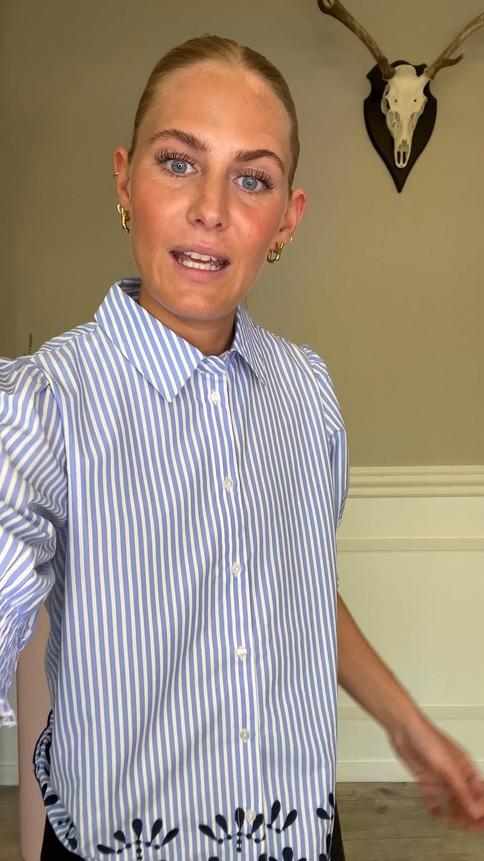 En sød skjorte fra Sisters Point er landet med striber og små broderet blomster som kun kan give sommerstemning. Den er løs i pasformen og derfor også perfekt til hverdag med en nederdel eller jeans til.