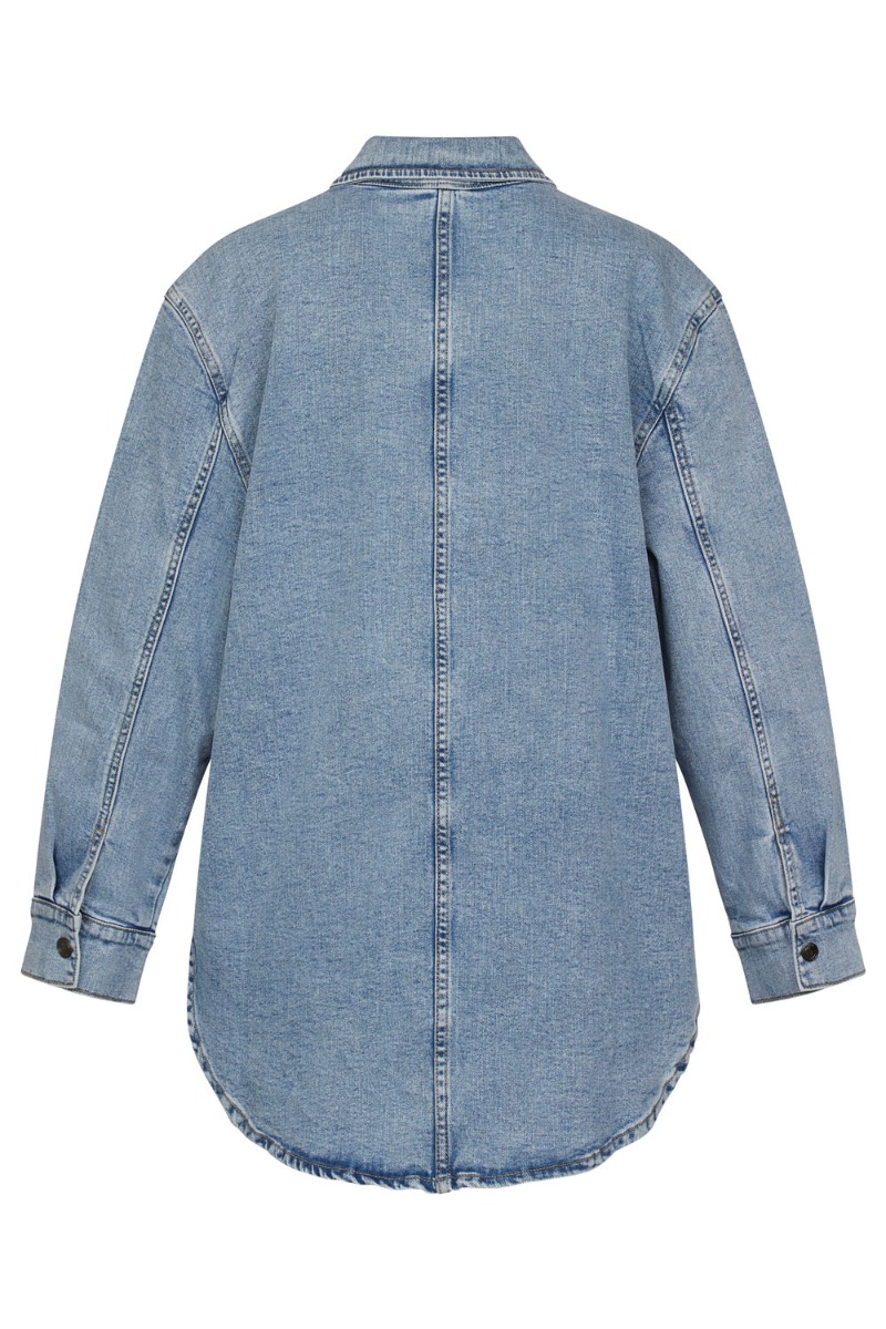 Super cool oversize skjorte fra Sisters Point. Skjorten er i en lysere denim nuance og med trykknapper hele vejen ned, hvilket også gør den ammevenlig. Skjorten er med krave foroven og har en enkelt brystlomme foran. Skjorten findes i flere farver og er oversize i pasformen.