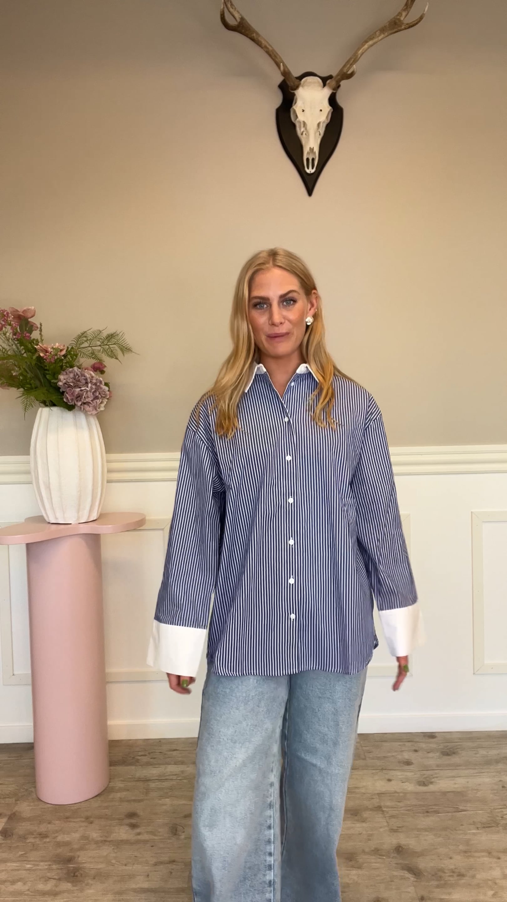 En virkelig fin og forårsagtig skjorte her fra Sisters Point i en sød blå farve. Denne skjorte har en løs pasform, hvid krave og ærmekant. Den er så sød til et par shorts eller jeans!
