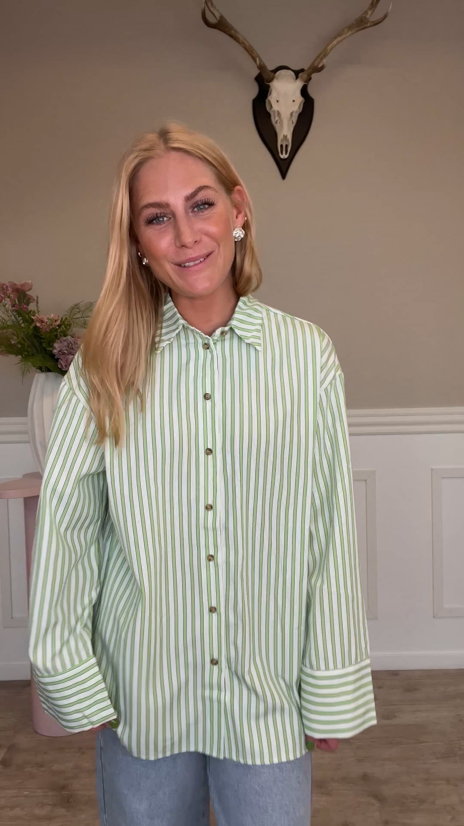 En virkelig fin og forårsagtig skjorte her fra Sisters Point i en sød grøn farve. Denne skjorte har en løs pasform, hvid krave og ærmekant. Den er så sød til et par shorts eller jeans!