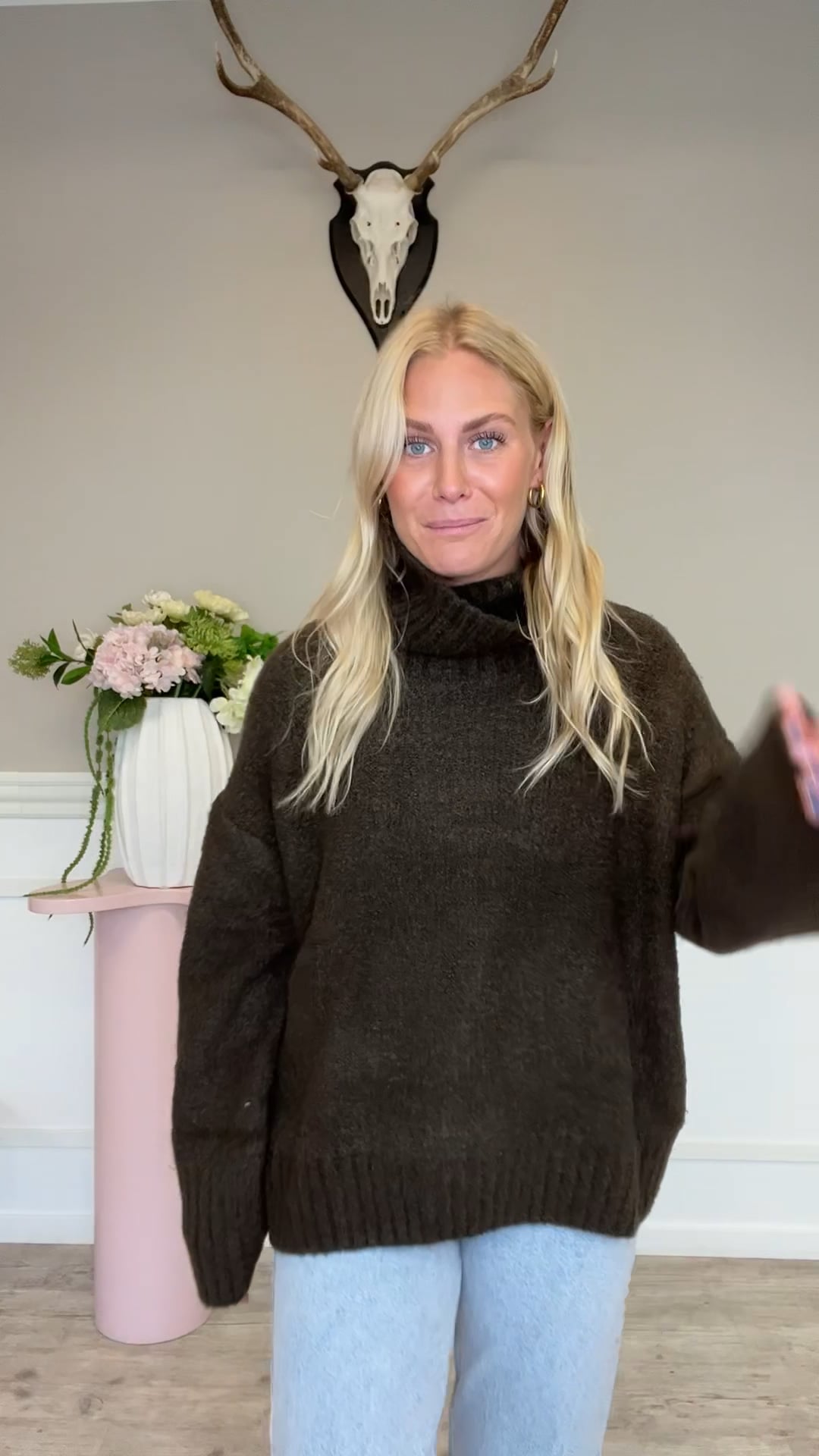 En perfekt løstsiddende strik fra Sisters Point med rullekrave til denne sæson. Den brune farver er et kæmpe hit denne sæson og derfor et godt køb til garderoben.