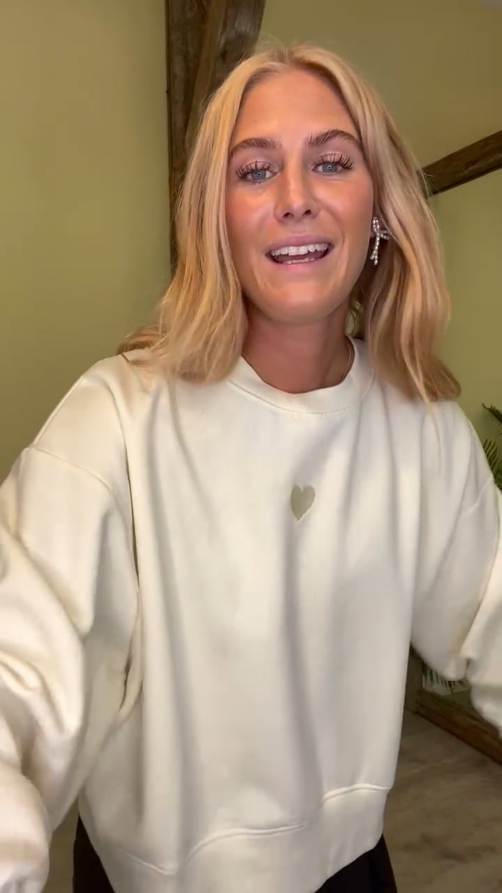 En skøn sweatshirt fra Sisters Point er landet i en fin cremefarve. Den er dejlig rummelig i pasformen, og så har den ribkant vd ærmer og bund, som gør den lukker tæt trods den rummelgie pasform. Som en sød detalje, er der broderet et hjerte på brystet.