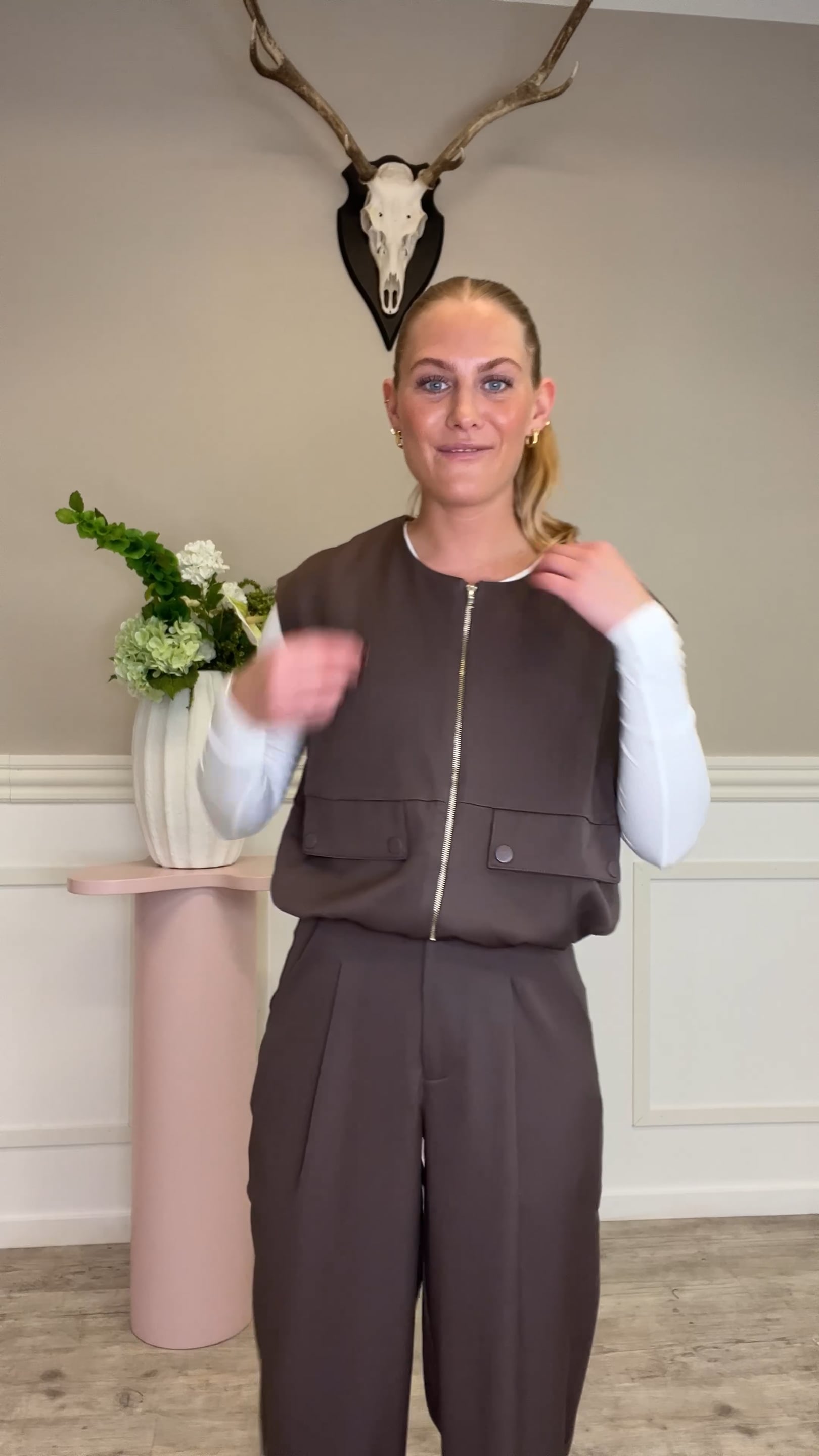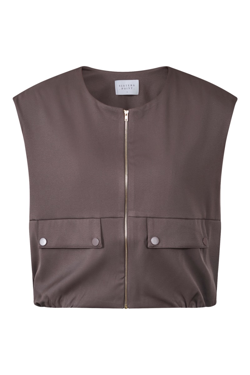 En cool ved fra Sisters Point er kommet i en smuk brun farve. Den er med lynlås foran og har to snyde lommer foran også. Den er nem at bruges sammen med en t-shirt eller udover en tætsiddende kjole med ærmer. Den findes også i sort.