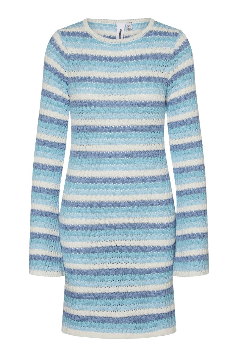 En meget POPULÆR og velkendt model fra sidste år fra Something New er selvfølgelig kommet i to nye farver og her skal du altså ikke vente for længe hvis du skal have fingerne i denne. Kjolen er tætsiddende i et flot strikket materiale med stretch. Den har rund hals og lange ærmer med et løst snit i enden. Kjolen sidder så flot på og emmer af sommeren i de flotte blå nuancer.