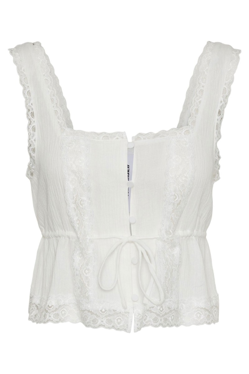 Something New - Snemily Sl Lace Crop Top - Ity Snow White