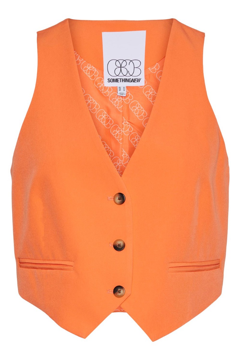 Vesten er i en klassisk model der er let løs i pasformen med v-udskæring og knapper ned foran. Den er super cool at style med de matchende coral farvet bukser for et helt sæt og kan samtidig bruges til et par denim shorts også.