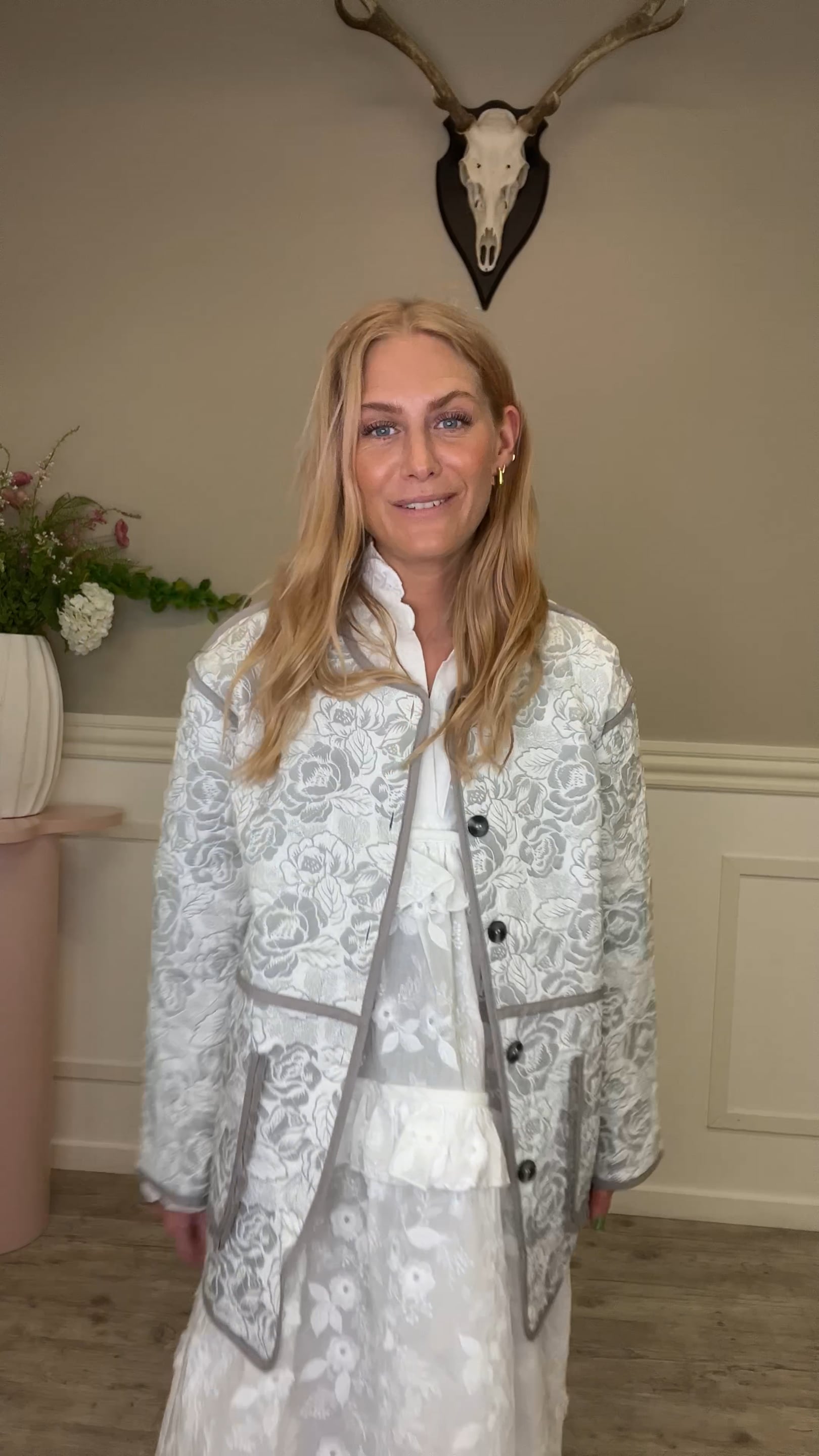 Den flotteste quiltede jakke er landet fra Stories From The Atelier. Denne jakke har den flotteste grå nuance med roser i stoffet. Herudover, har den en fin kant bl.a. omkring lommerne, som giver en flot kontrast til jakken. Den er så fin over en kjole som en pænere jakke, men kan bestemt også bruges til hverdag!