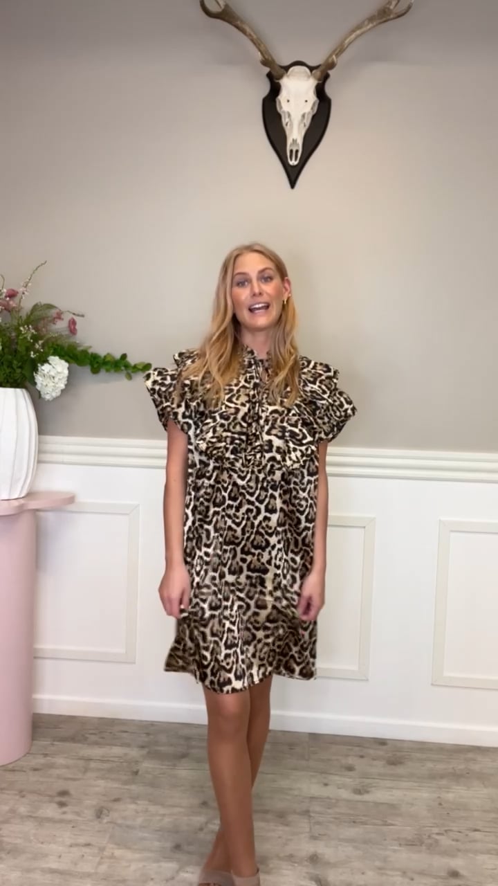 En virkelig fin og også super cool kjole er landet fra Stories From The Atelier. Denne kjole er i det super smarte leopardprint, som vi altså stadig ser over det hele! Kjolen har en løs pasform og mange flotte flæsedetaljer, som gør den ekstra spændende.