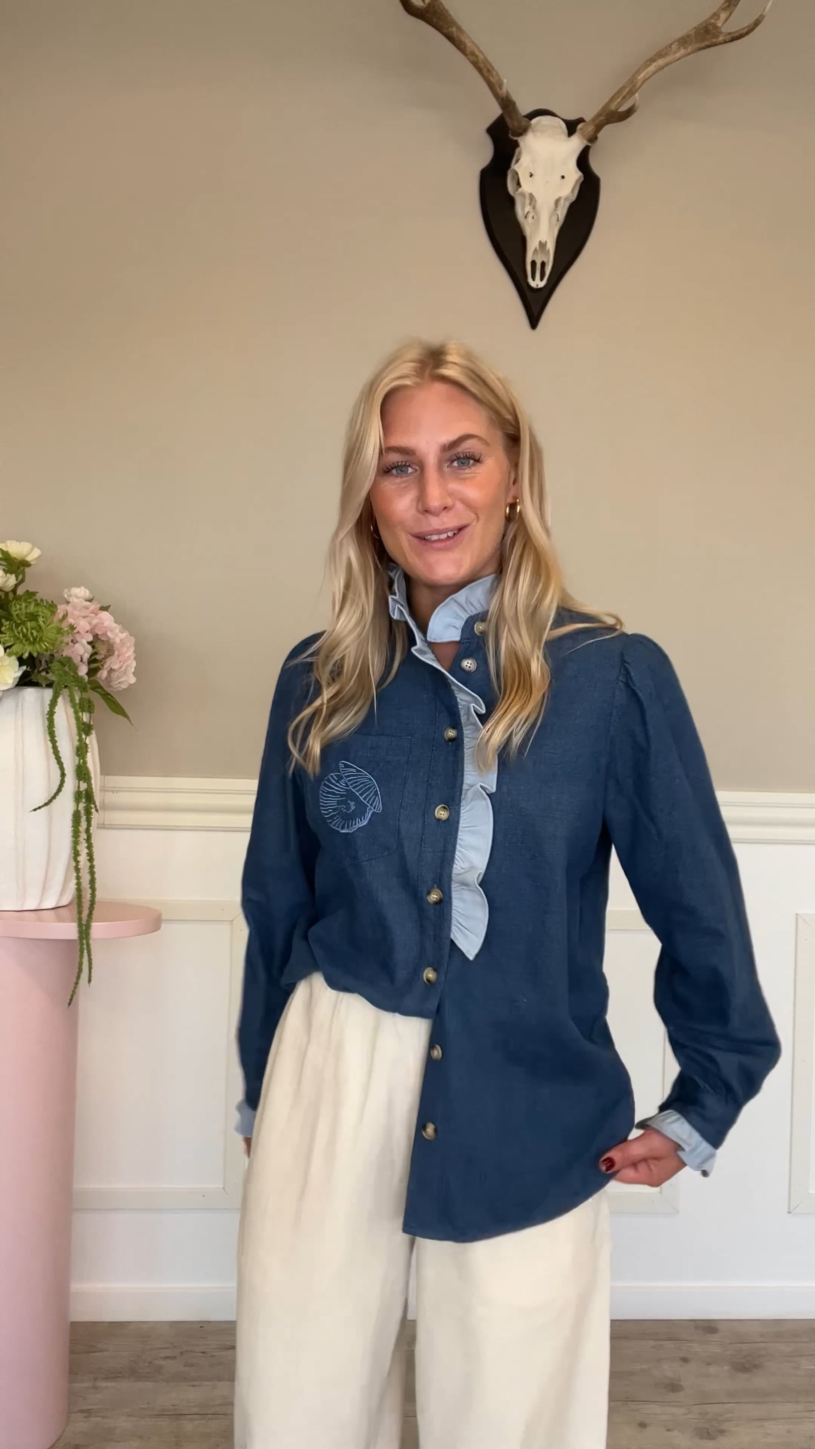 Skjorte fra Stories From The Atelier. Denne skjorte har et mix af to forskellige kvaliteter, som giver en mega sød effekt. Der er knaplukning fortil som du kender og lomme med broderet logo.