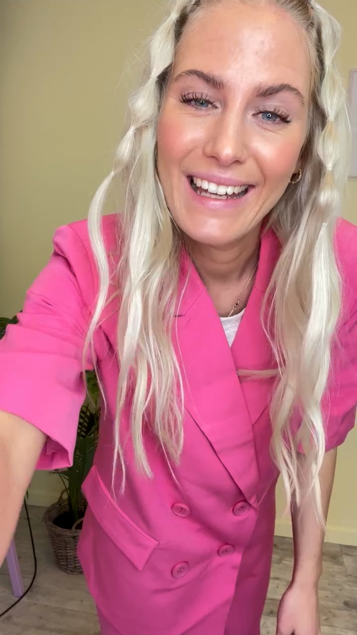 Som i ved kommer vi til at se en masse til blazerlooket denne sæson og derfor har vi selvfølgelig også fået denne seje blazer der er anvendelig til foråret og sommeren med dens korte ærmer. Blazere lukkes foran med pink knapper og har matchende bukser. Et sæt du virkelig kan lave til et smukt festlook med stiletter og samtidig det sejeste afslappet hverdagslook med sneaks.