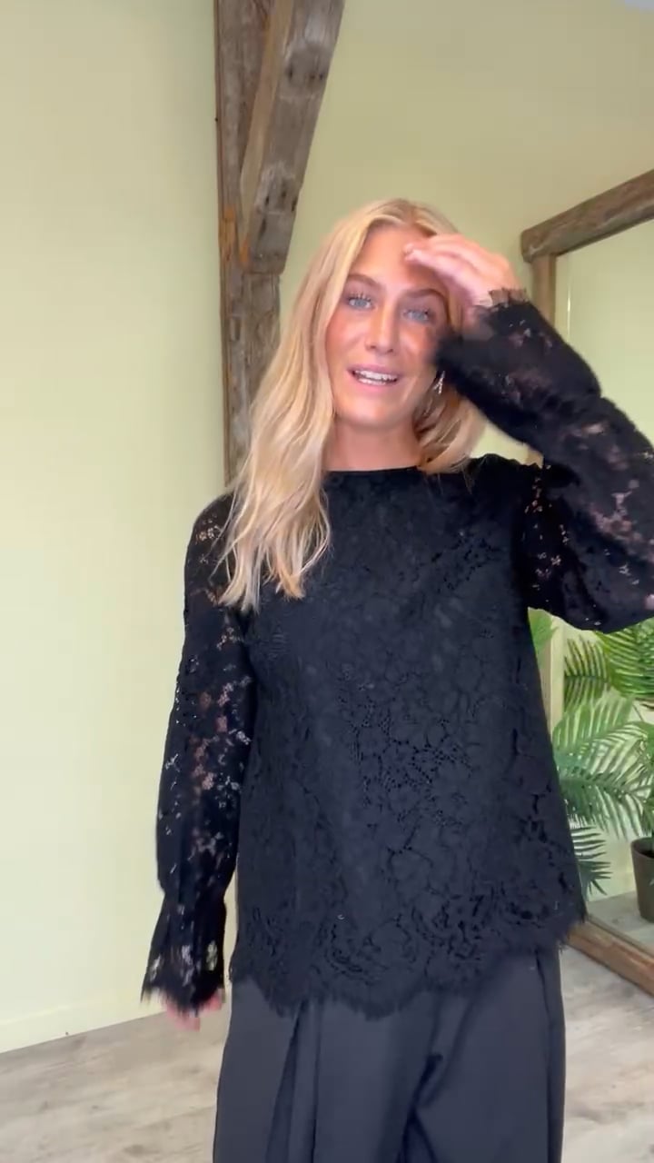 Den sødeste bluse fra Y.A.S. Blusen er klassisk sort og i det smukkeste blondemateriale. Ude ved håndleddet er ærmerne lidt bredere, som giver dem en feminint look. Bagtil har den en usynlig lynlås som gør at du nemt kan komme i den.