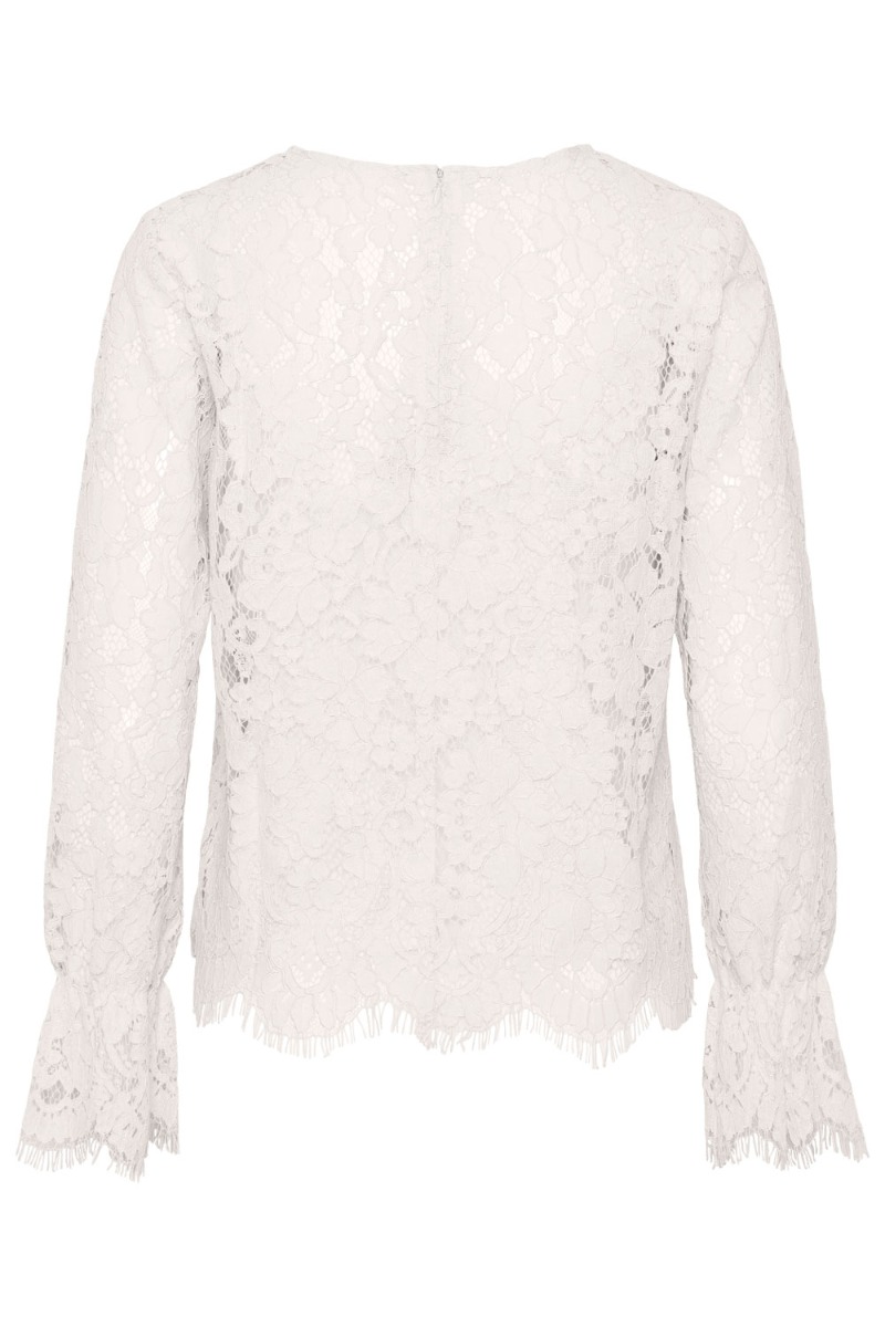 Den sødeste bluse fra Y.A.S. Blusen er cremefarvet og i det smukkeste blondemateriale. Ude ved håndleddet er ærmerne lidt bredere, som giver dem en feminint look. Bagtil har den en usynlig lynlås som gør at du nemt kan komme i den.