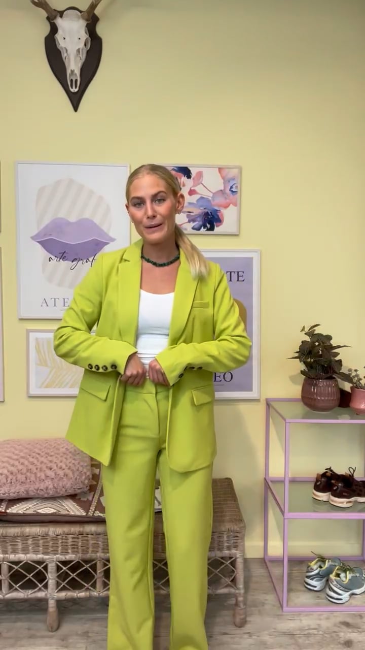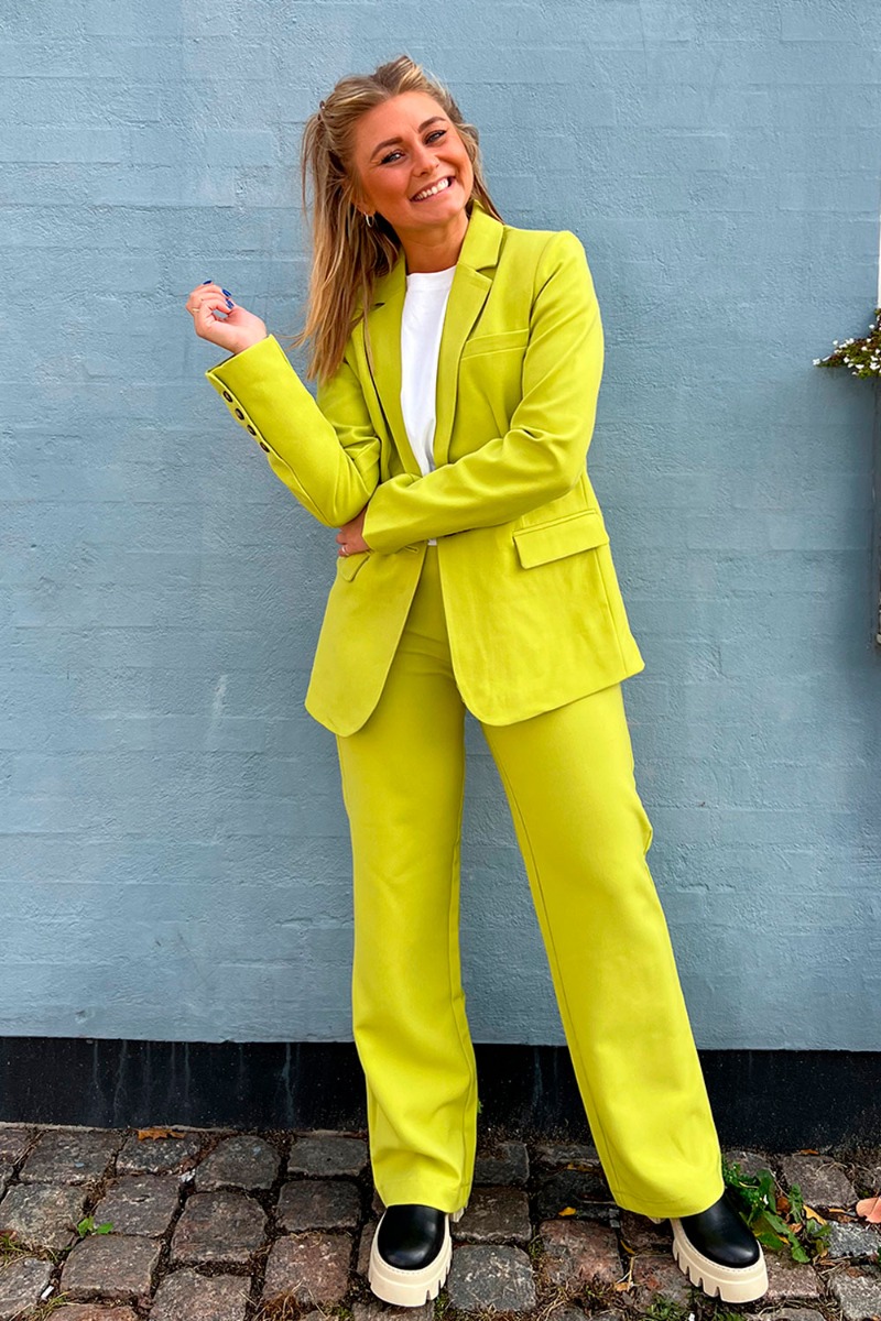 De smukkeste bukser fra Y.A.S i den sejeste grønne limefarvet nuance. Bukserne har en god pasform der er løse med lige ben og fast linning. De lukkes med en skjult knaplukning og lynlås foran og har lommer. Style dem med den matchende blazer for et fuldendt blazerlook.