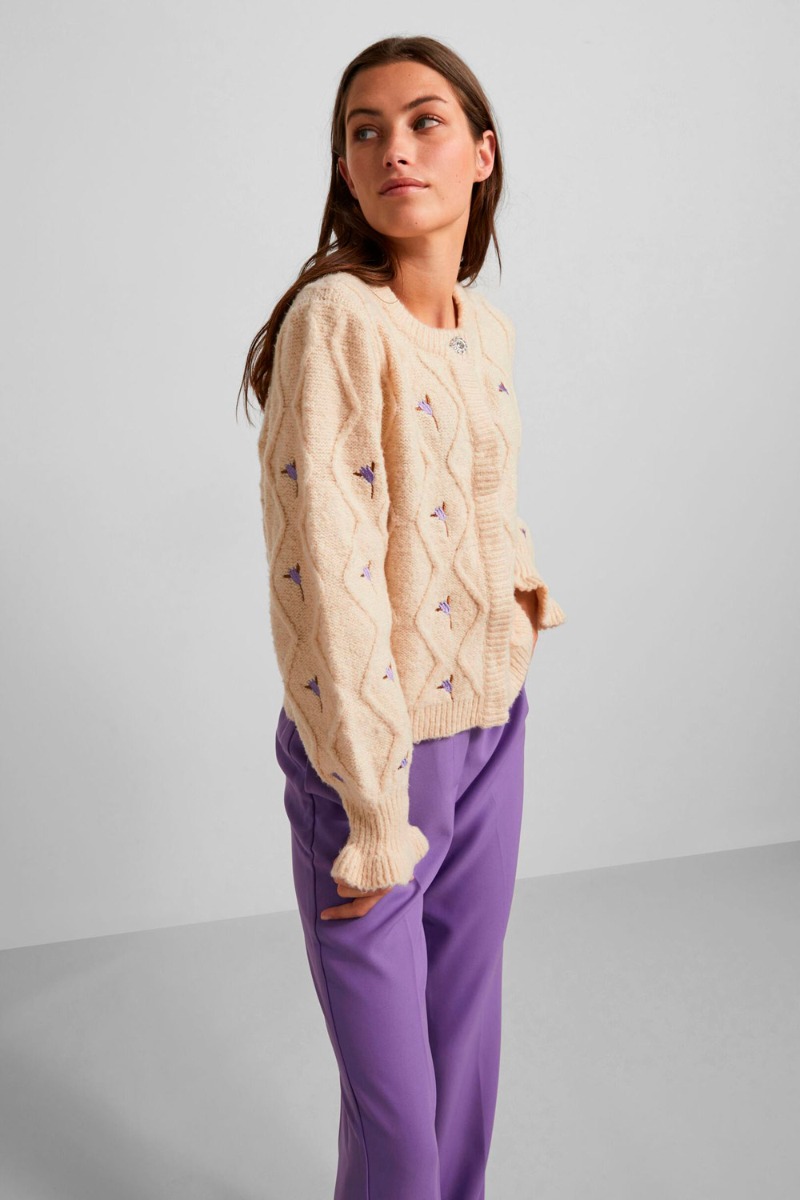 Y.A.S - Cardigan - YAS Miri Embroided Knit Cardigan - Sand Dollar