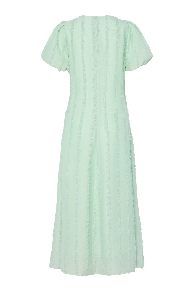 Den smukkeste kjole fra Y.A.S er landet! Denne kjole har den fineste pastel grønne farvenuance, korte ærmer og smuk længde. Den har en rund halsudskæring og fremhæver en feminin silhuet. Brug den til sæsonens særlige begivenheder, bryllupper, fødselsdage m.m.