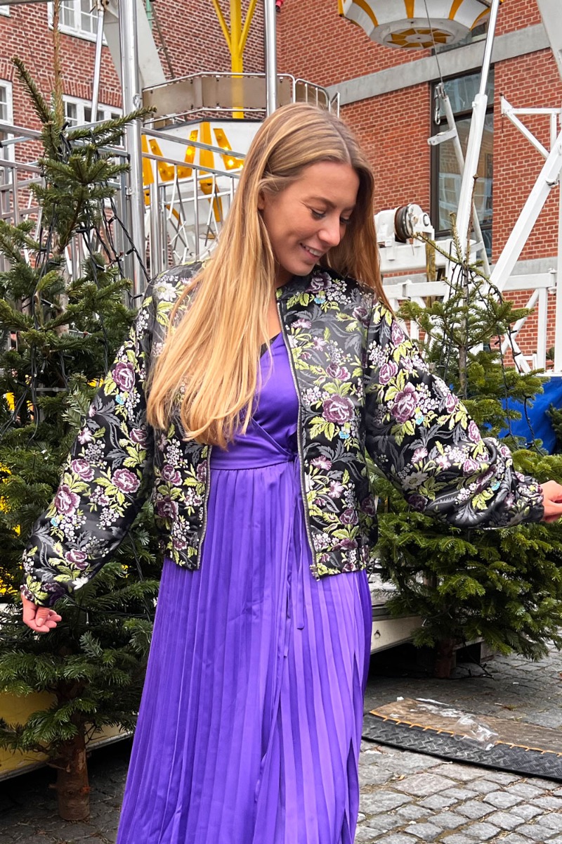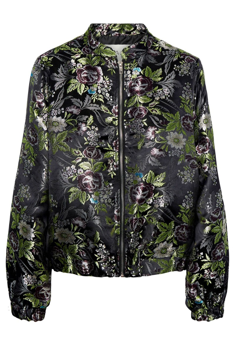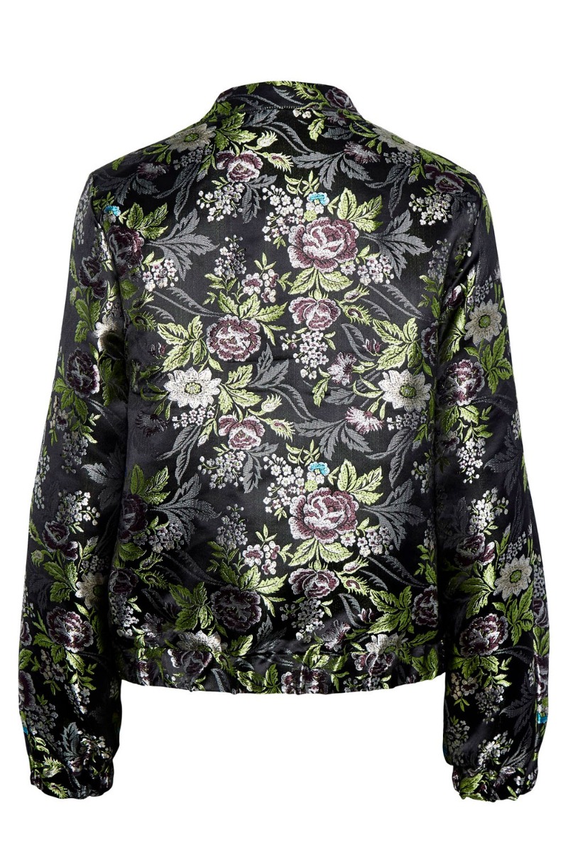 Sejeste bomberjakke fra Y.A.S i en sort nuance med de fineste små broderede blomster. Jakken har en løstsiddende og oversized pasform. Den har lynlås foran med elastikkant ved både ærmer og bunden af jakken. En jakke som er super smuk at style både over kjoler eller som blazer.