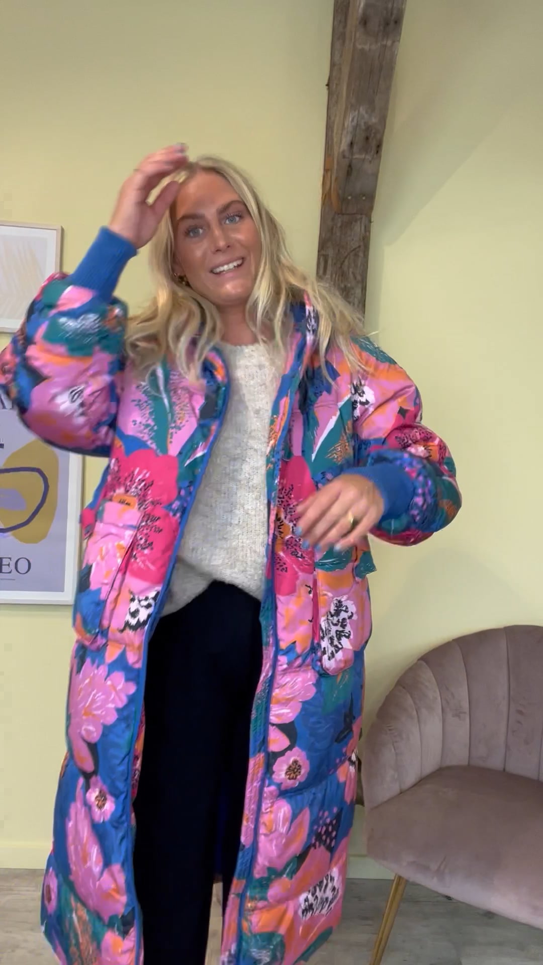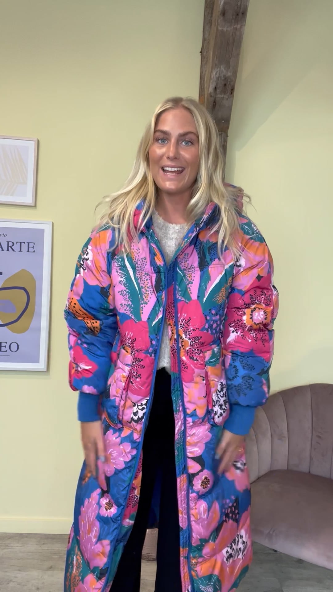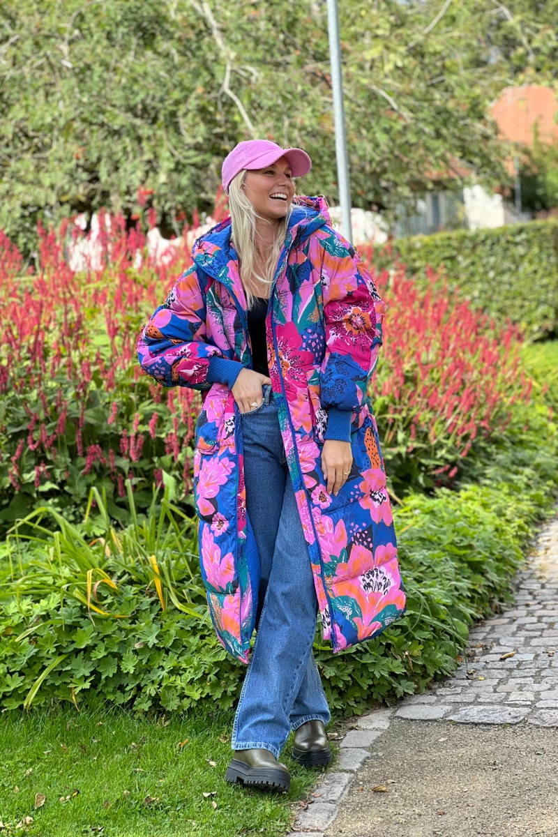 WAUUV, tjek lige den flotteste og sejeste jakke fra Y.A.S! Jeg ville ikke vente for længe hvis jeg var dig. Jakken er så flot i de smukkeste multifarver med blomsterprint. Den er super cool i længden med hætte, lynlås foran og en bred ribkant ved håndeddet der holder kulden ude.. Jakke har en fin lille detalje der kan snøres ind i livet hvilket skaber et feminint udtryk. Style den til de skønne bamsestøvler fra Phenumb denne vinter.