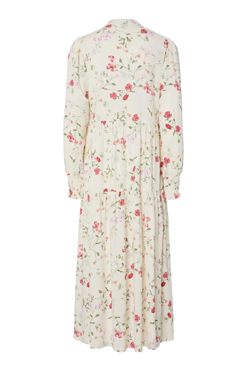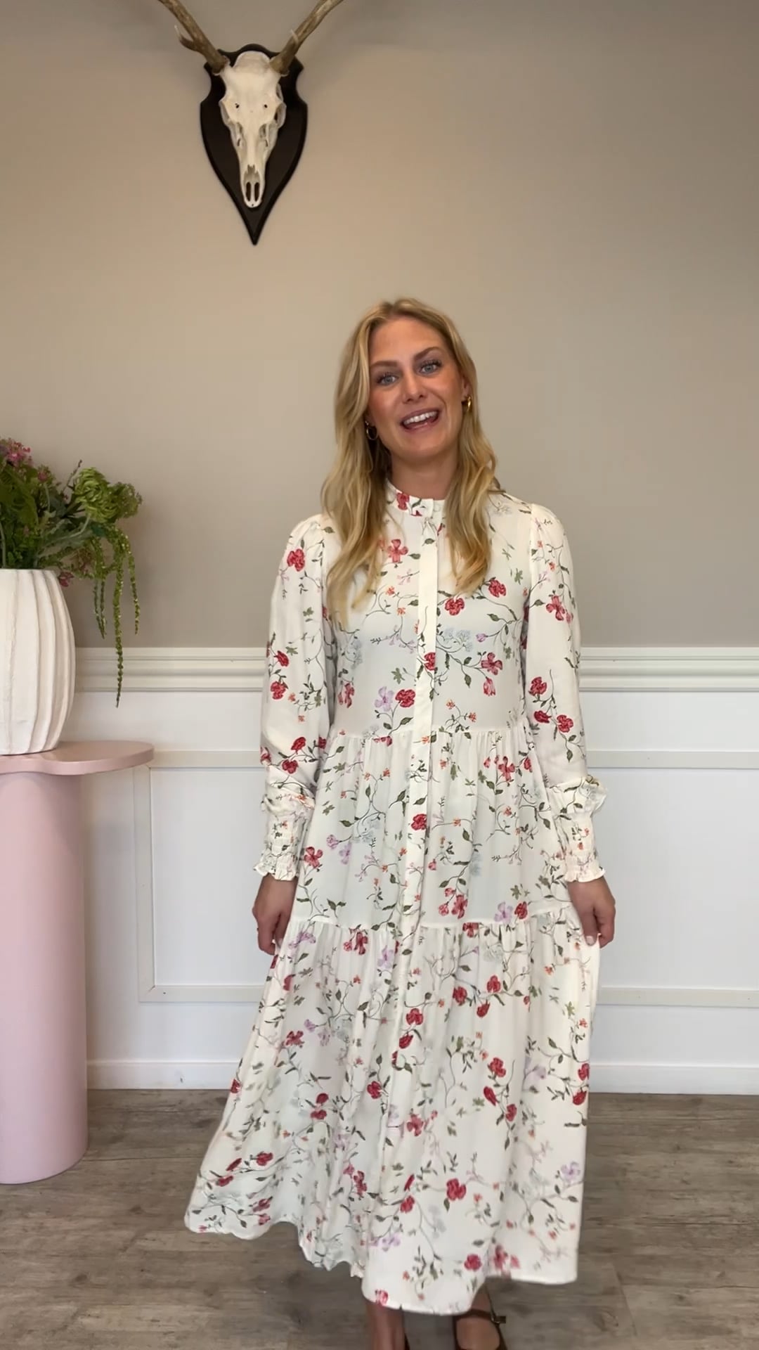 En smuk kjole i et smukt print er landet fra Y.A.S. Den er løs i modellen og kan derfor godt bruge under den tidlige graviditet. Derudover er den knapper hele vejen ned og perfekt til amning. Den er let i kvalitete og fin til både fest og hverdag.