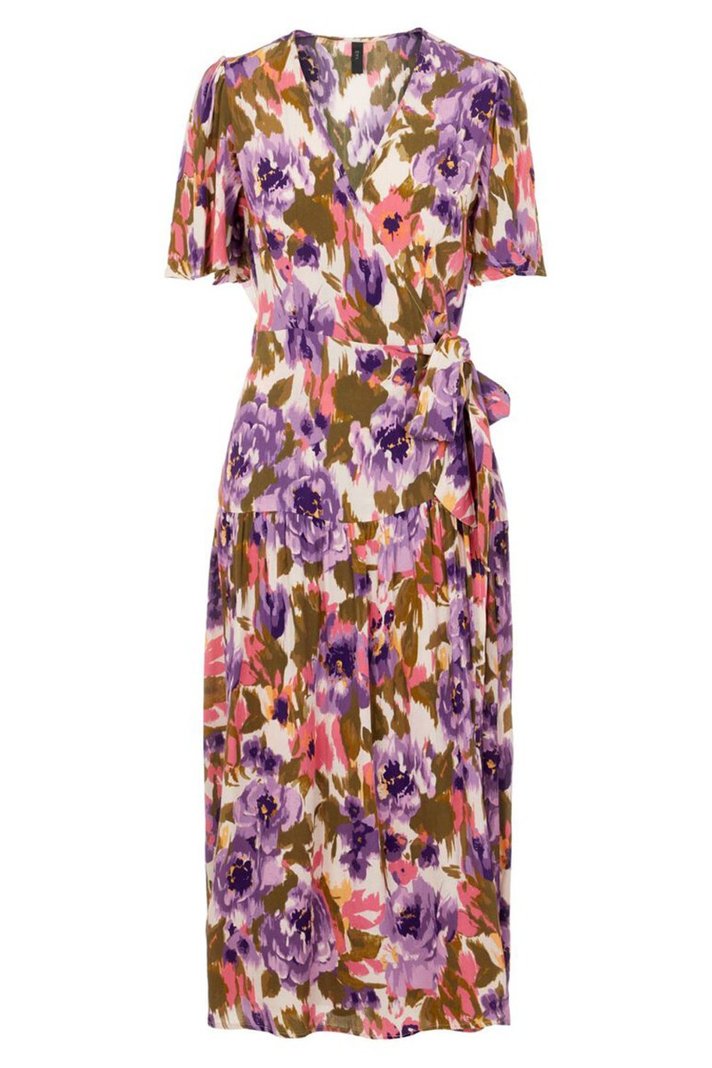 Ejj, se nu lige denne skønne kjole fra Y.A.S! Den er lavet i det smukkeste farverige blomsterprint. Kjolen er med wrap der bindes i siden og giver en smuk talje. Foran går kjolen ned i v-udskæring der gør den ammevenlig. Style denne kjole til en stilet eller en dejlig sommerdag med en sød sandal.