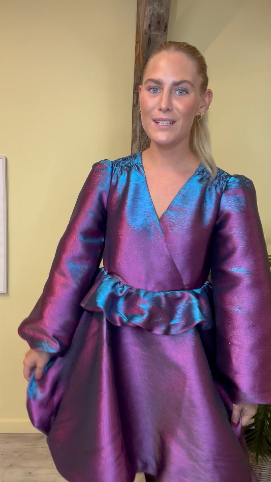 Waaauv, den smukkeste unikke kjole fra Y.A.S der changere i blå, pink og lilla toner. Kjolen passer perfekt til navnet, nemlig cameleon som jo justere i farven alt efter bevægelse - SÅ SMUKT! Kjolen er rummelig med flæsedetalje ved livet og puffet ballonærmer. Style kjolen med en lille stilet eller støvle.