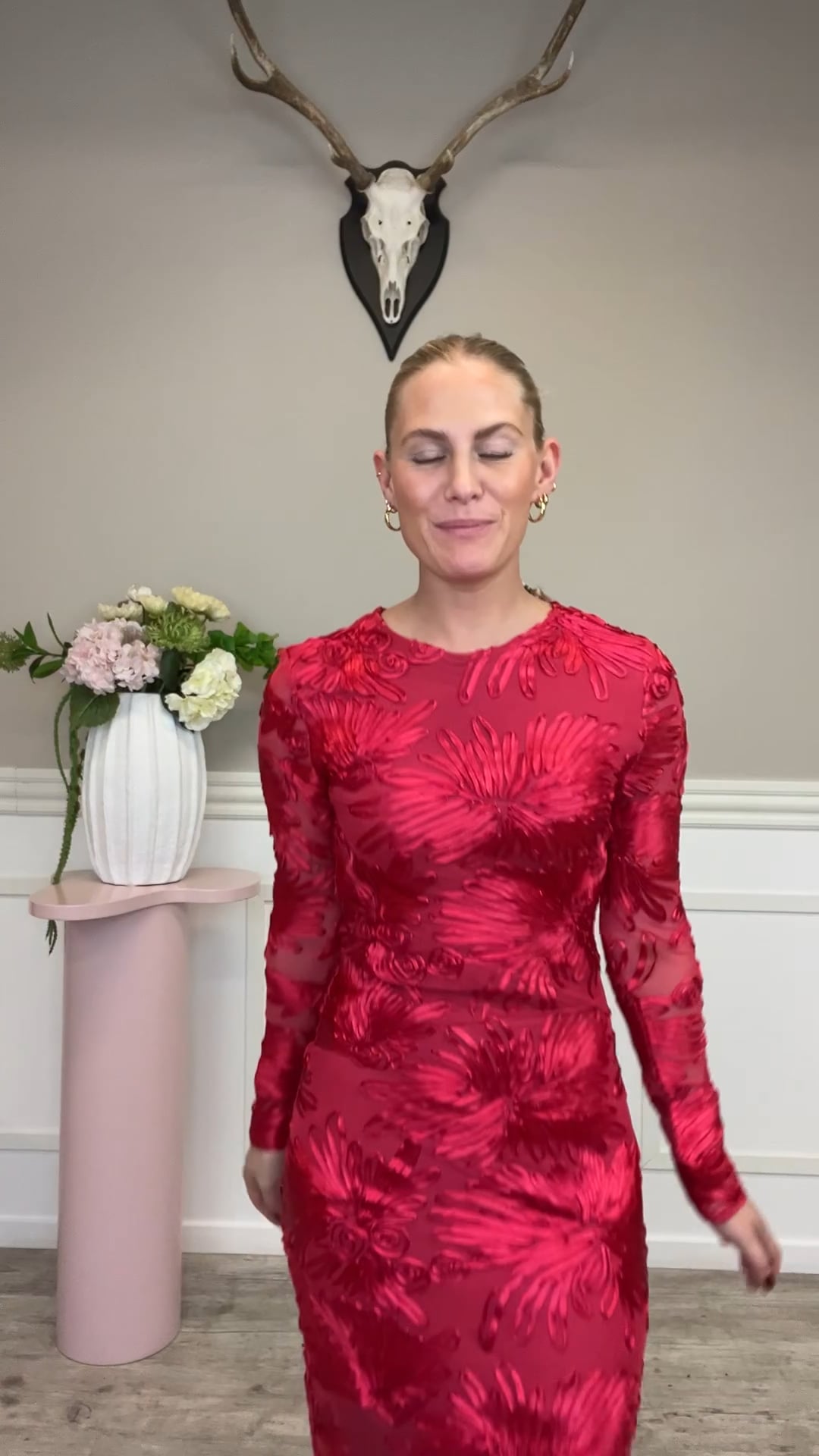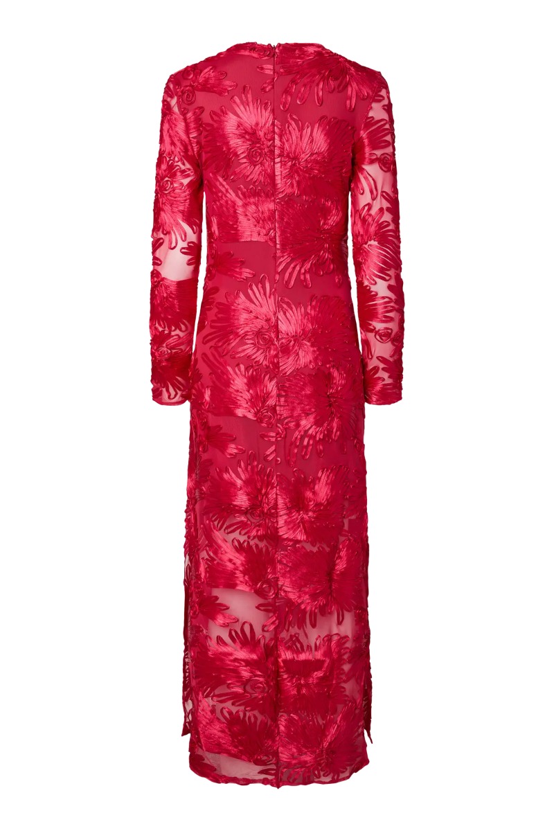 En sød kjole fra Y.A.S i denne smukke kvalitet med 3D blomster effekt. Den er i en klar rød farve og derfor også perfekt her til efteråret. Den er tætsiddende og foret så den ikke er gennemsigtig. Nem at style uden en masse smykker da den er så fin og detaljeret i sig selv.