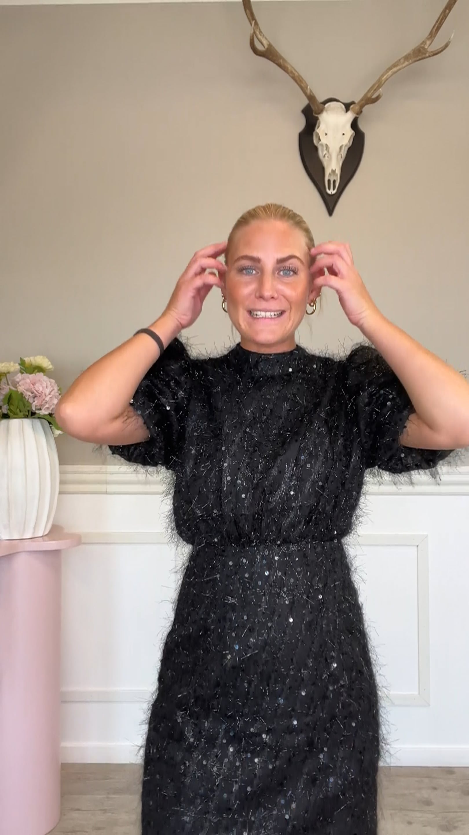 En virkelig fin kjole fra Y.A.S i en klassisk og elegant pasform. Denne kjole er syet flot ind i taljen, går lidt op i halsen og har en flot ærmelængde. Den har et "fussy" look med glitter i. En super festlig kjole, som er perfekt til denne sæson!