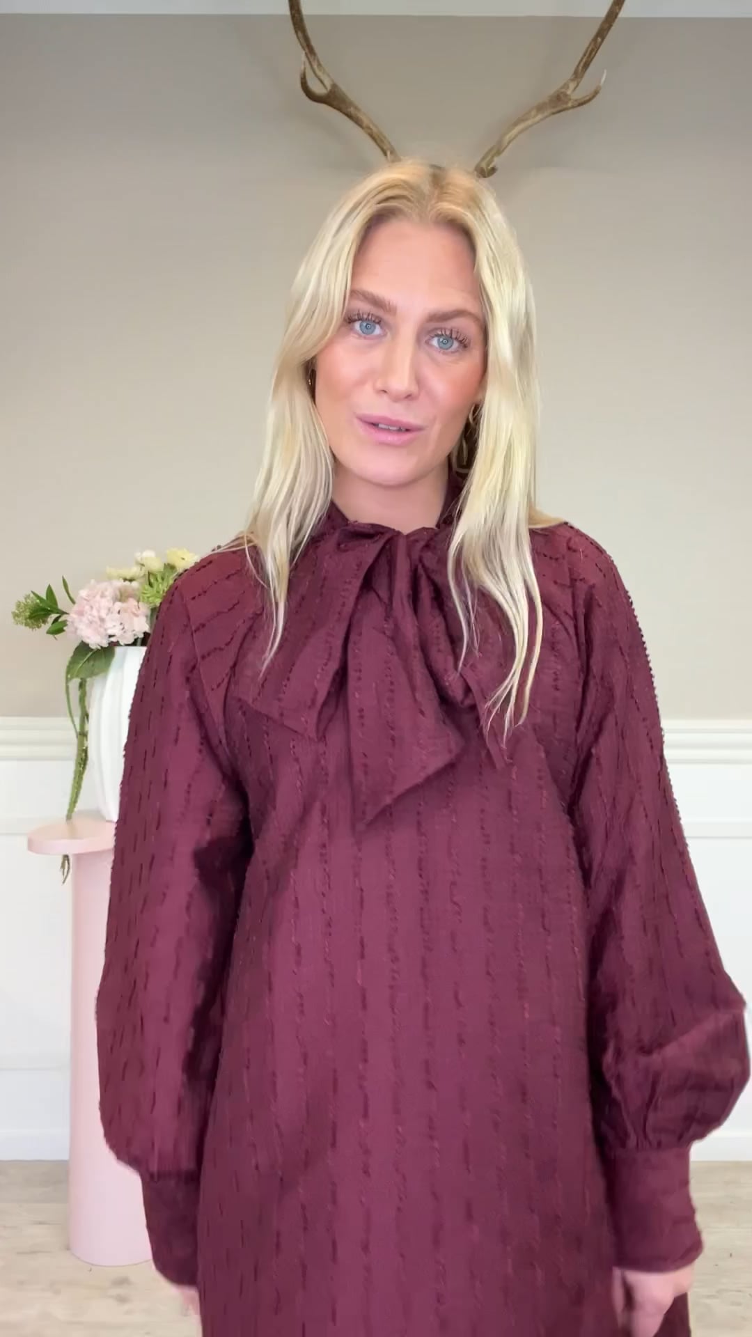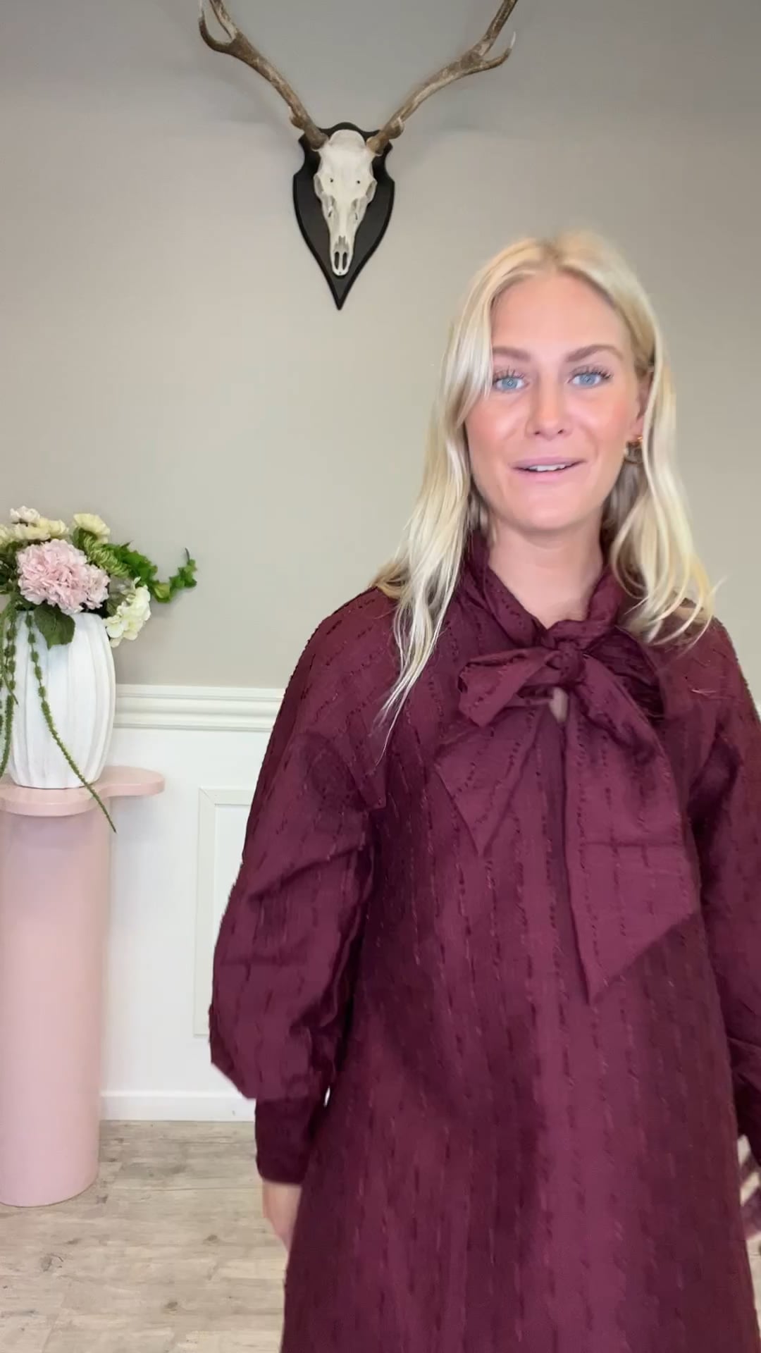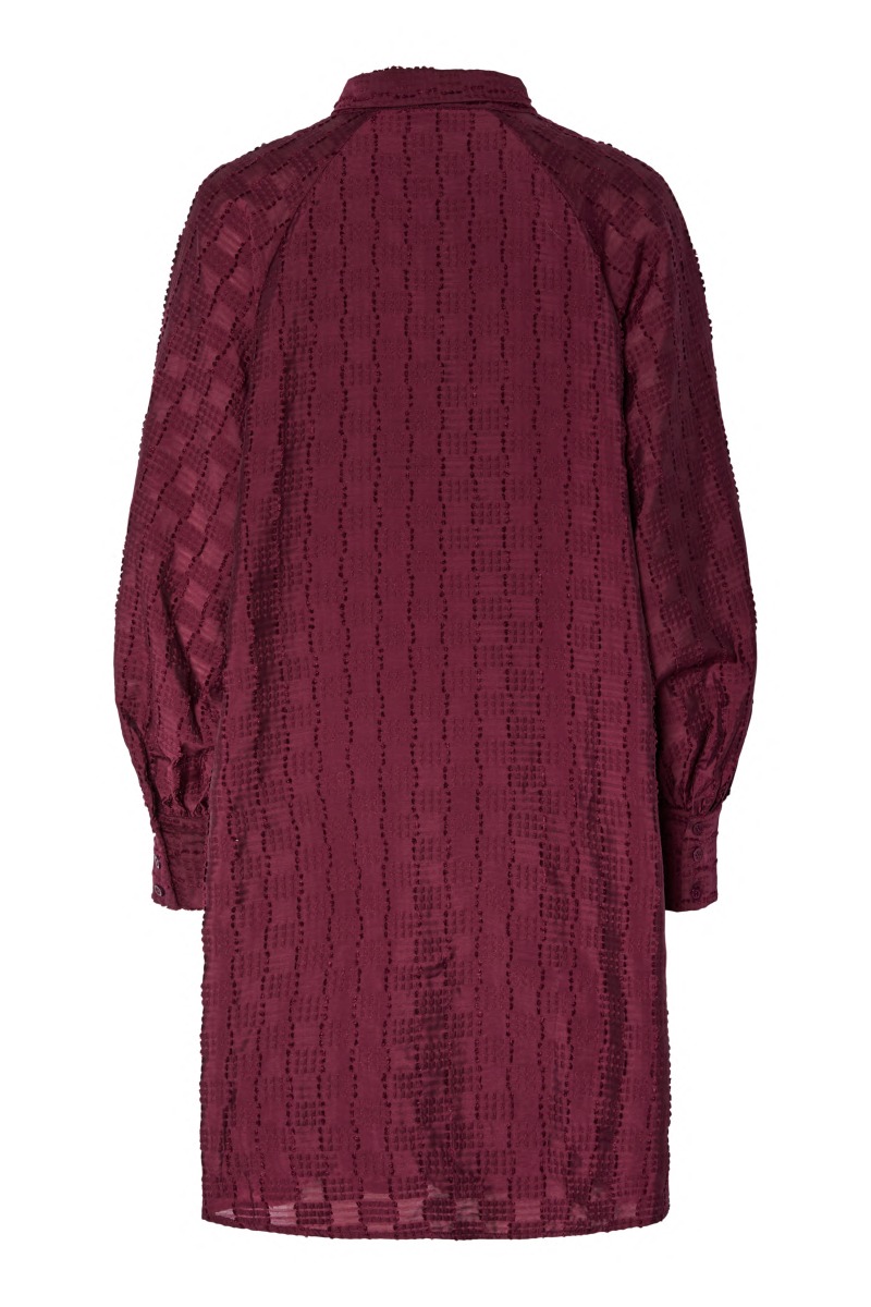 Fineste kjole fra Y.A.S er landet! Denne kjole har lange ærmer og en løs pasform, som sikrer god komfort hele dagen! Den har sløjfebinding ved halsen, som giver en feminin detalje til en ellers enkel kjole. Kjolen har en flot dyb, rød farve og kan styles op og ned alt efter anledning.