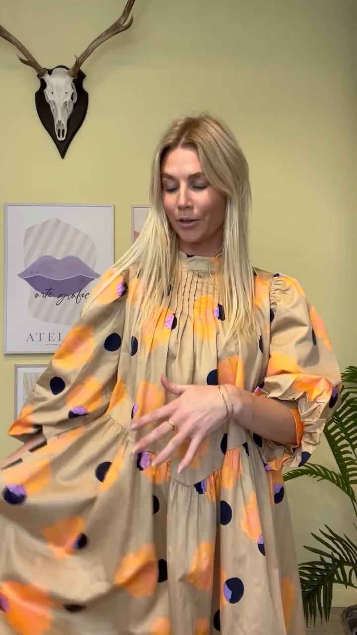 Super fin kjole fra Y.A.S i søde beige/orange nuancer.