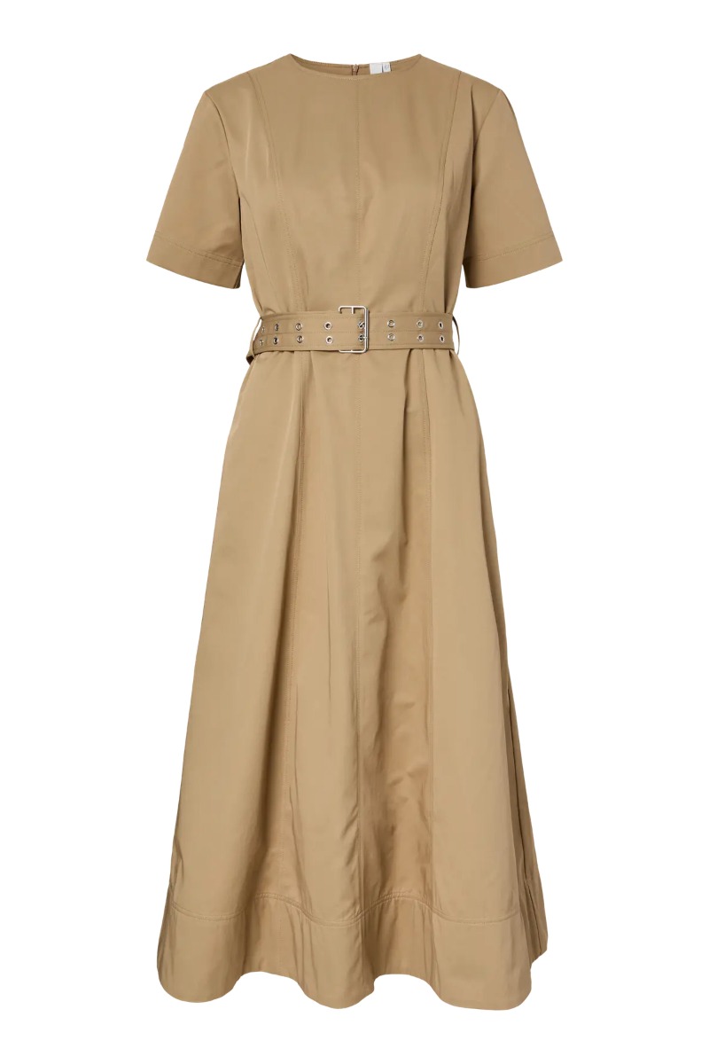 En cool kjole fra Y.A.S er kommet i denne brune farve med et bælte i taljen. Bæltet er med til at give dette rå look hvor den nemt passer med et sandaler. Den lukke si nakken med en skjult lynlås.