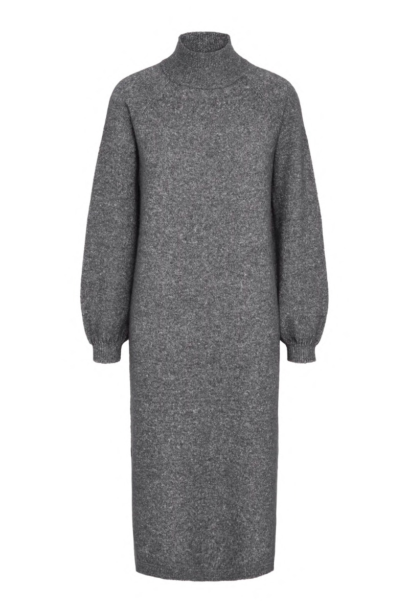 Y.A.S - Kjole - Yas Balis Ls Funnel Knit Dress - Medium Grey Melange