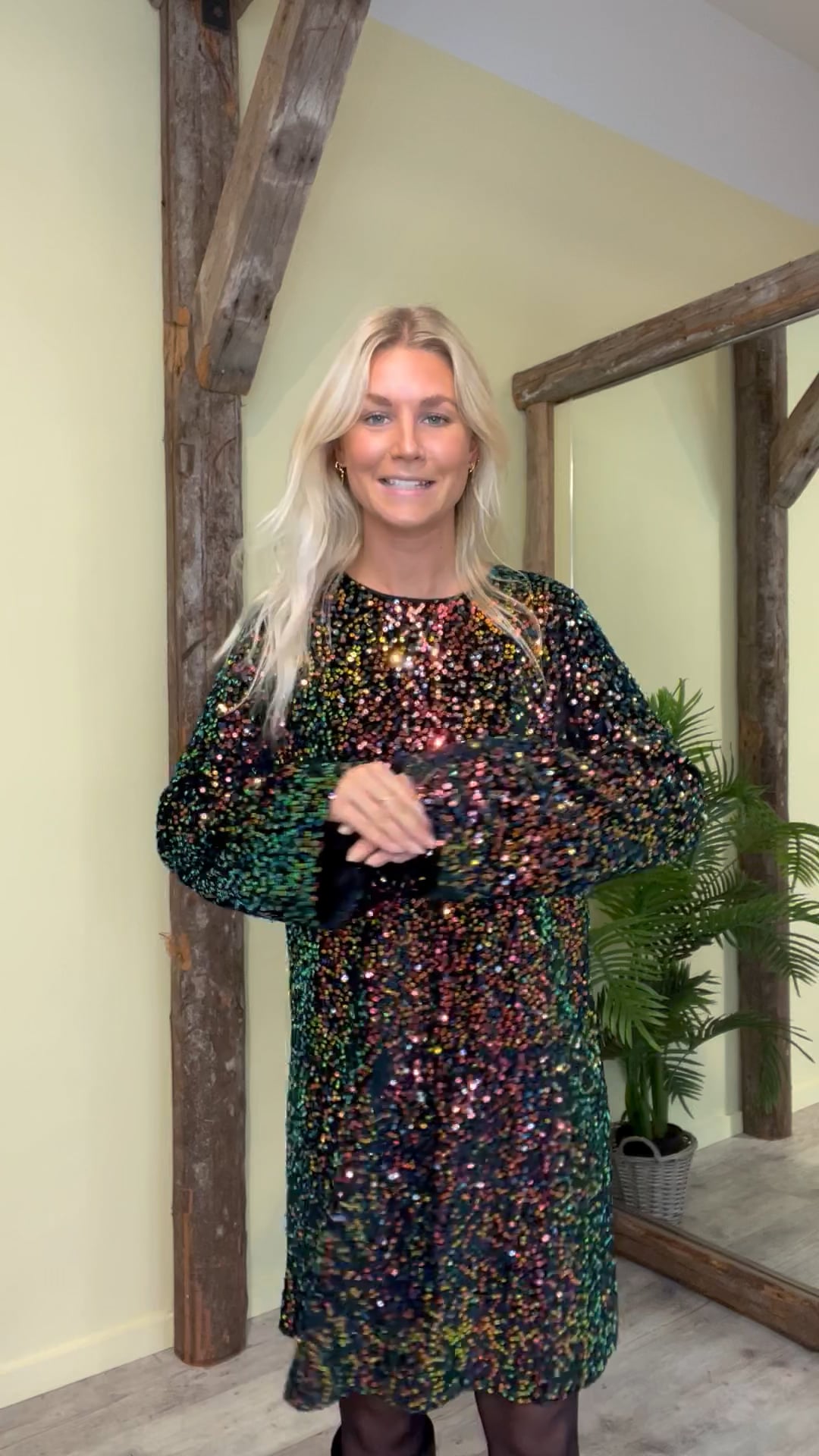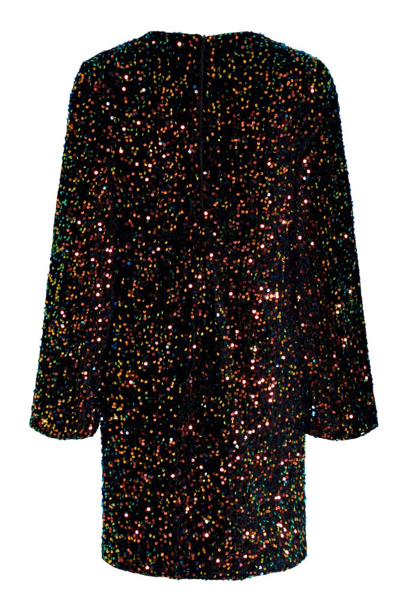 En perfekt pailette kjole fra Y.A.S er kommet til dette efterår. Kjolen er med multi farvet pailetter og har en løs pasform. Den er foret med glat materiale så den er behagelig at have på hele dagen. Kjolen åbnes i nakken med en skjult lynlås så den er til at komme. Derudover er den fin til et par stiletter eller med en strik over til mere hverdags brug.