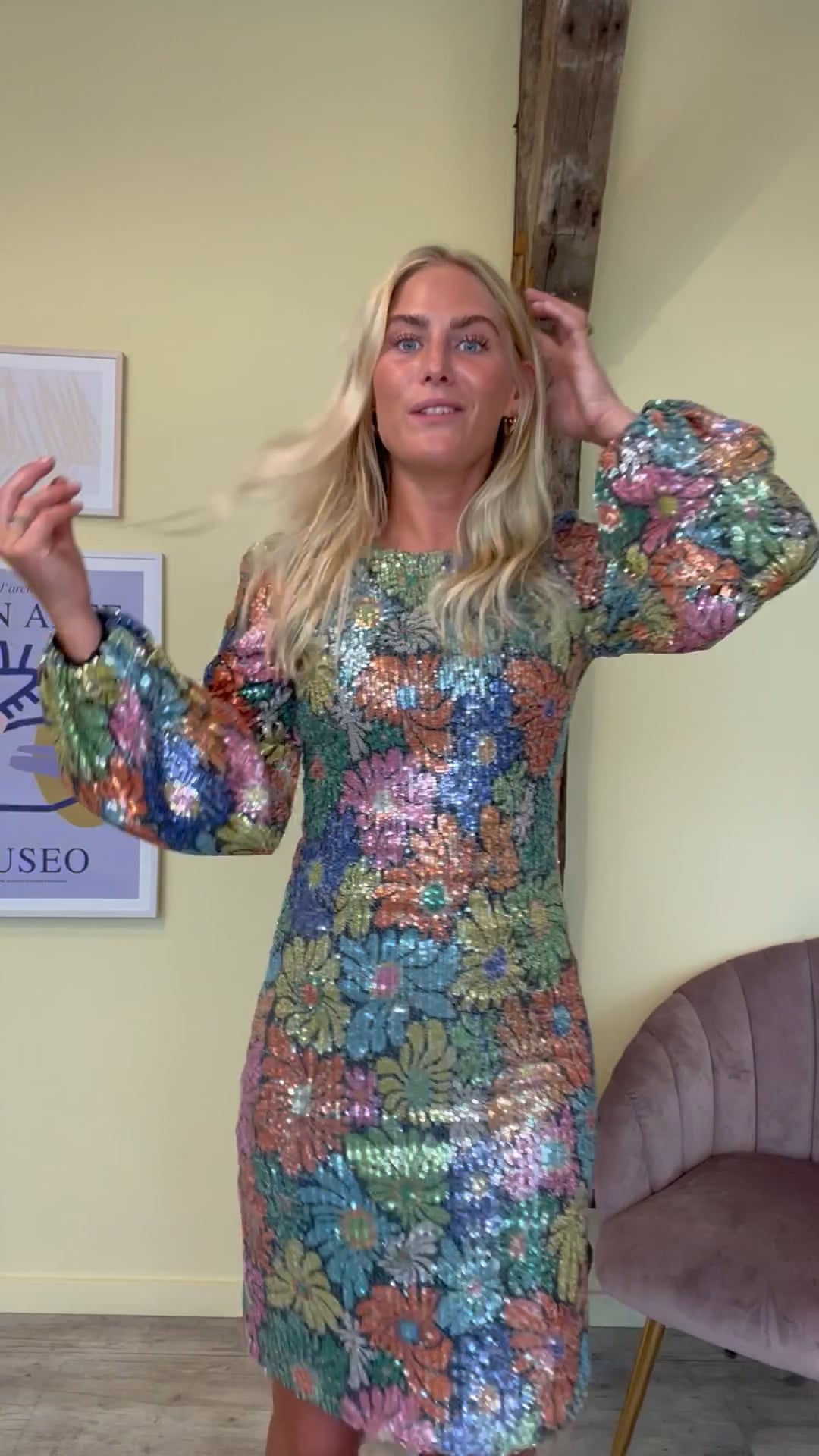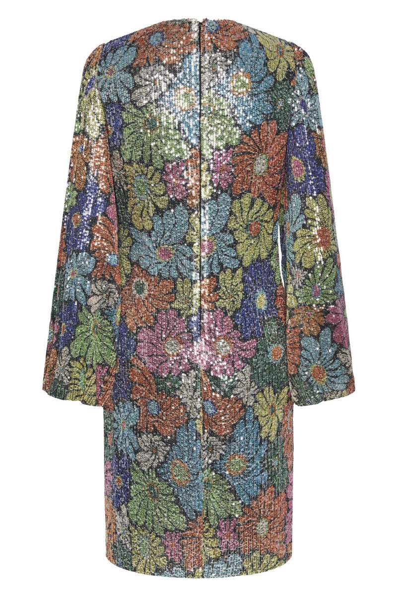 En sej pailette kjole er kommet fra Y.A.S. Kjolen har et smukt blomsterprint i forskellige farver. Derudover har den ballonærmer og er med en løs pasform. Bagpå er der en lang skjult lynlås så den er til at komme i. En kjole hvor du bliver festen midtpunkt.