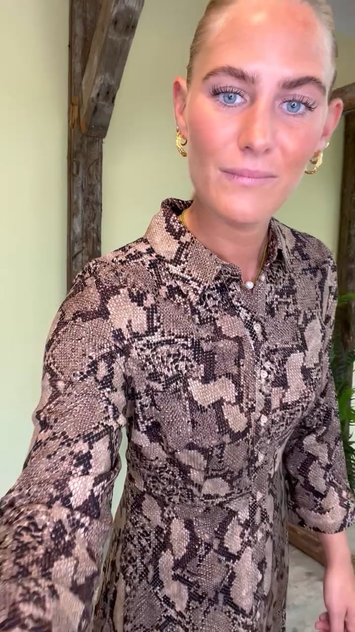 Y.A.S - Kjole - YAS Savanna Long Shirt Dress S. - Fungi/Snakea