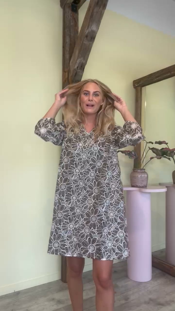 En fin kjole i en løs pasform og i en skøn model fra Y.A.S. Den er med blonde i yderstoffet hvor den smukke blomster mønster markeres med hvid tråd. Derfor er den også foret, så den ikke er genenmsigtig. Den er med 3/4 lange ærmer som danner en balloneffekt. Brug den gerne til et par sandaler til sommer eller sneakers hvis det er køligere.