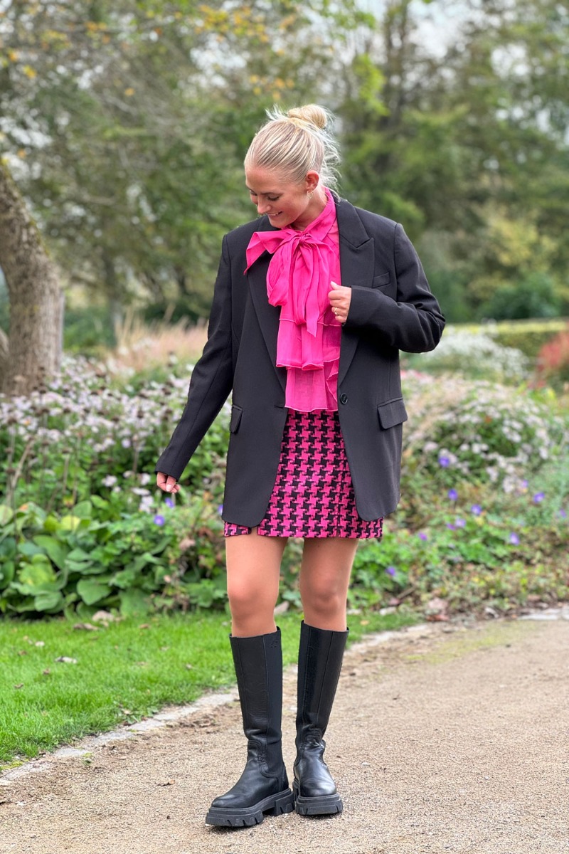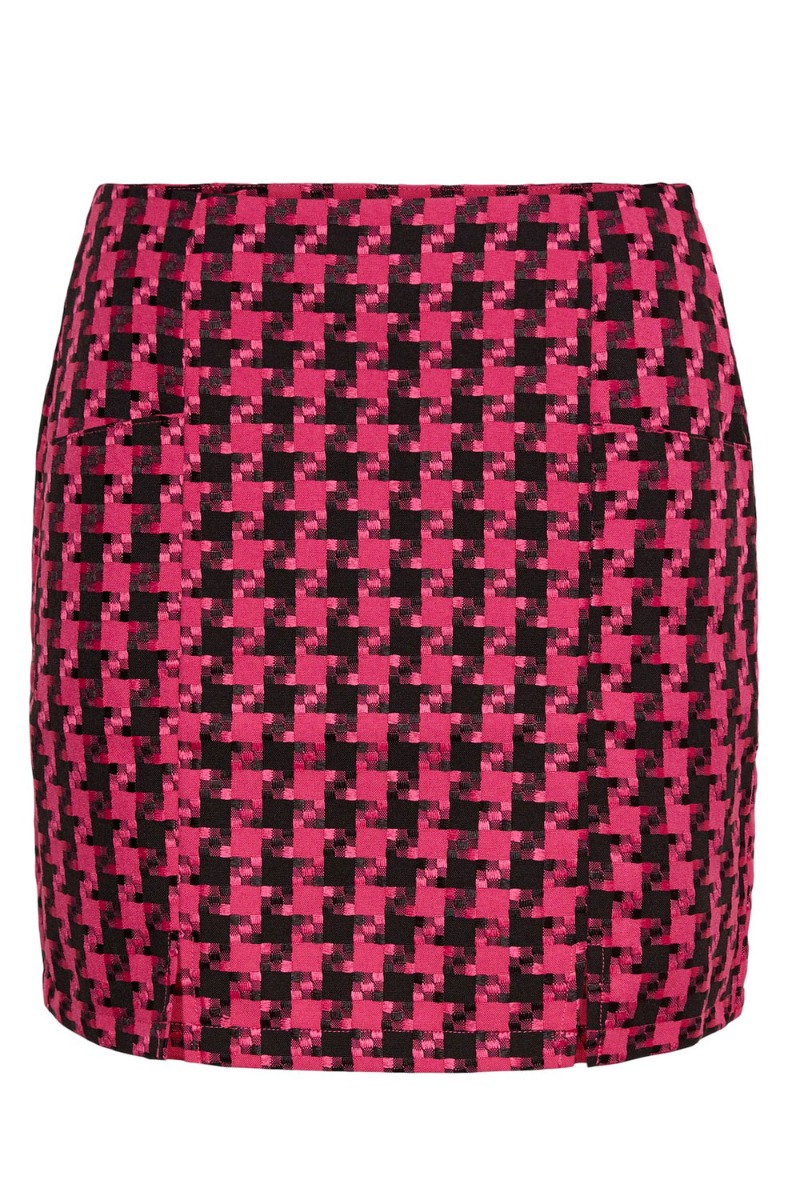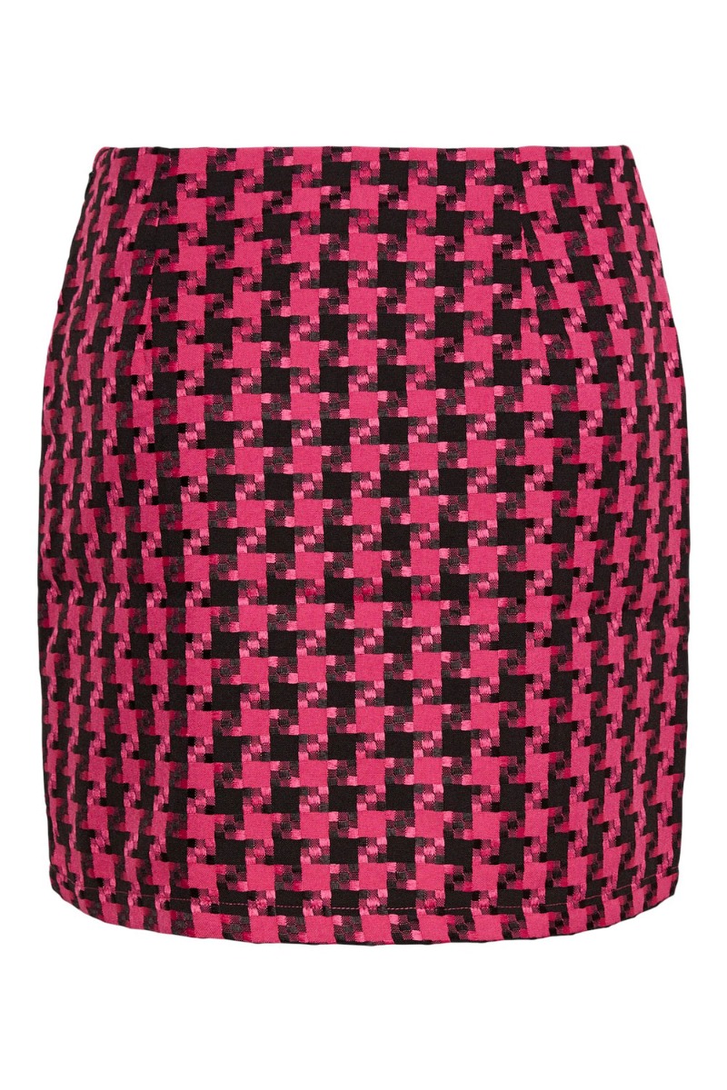 Så piger! Nu er den endelig landet - denne seje nederdel fra Y.A.S. Den er i et cooleste print i sort og pink. Kvaliteten er helt fast og uden stræk. Den lukkes med en skjult lynlås og har skrålommer i begge sider foran. Den er fin sammen med en simpel t-shirt eller måske til den matchende jakke fra samme mærke.