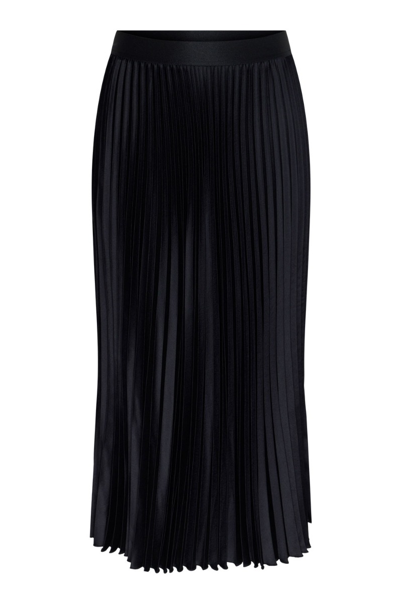 En sød nederdel fra Y.A.S er kommet i en klassisk sort farve. Den er med elastik i taljen og er plisseret i stoffet. Derfor falder den også flot og let som gør den nem at bruge til hverdag med en t-shirt eller til en skjorte til fest. Den er en smule blank i stoffet og den findes også i brun.