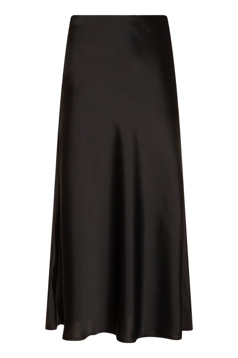 En fin nederdel i et satin look er kommet fra Y.A.S. Den er lang i modellen og har elastik i taljen. Kvaliteten er kraftig og falder derfor smukt ned af kroppen og er heller ikke gennemsigtig. Den findes også i blå og fin sammen med en simpel t-shirt.