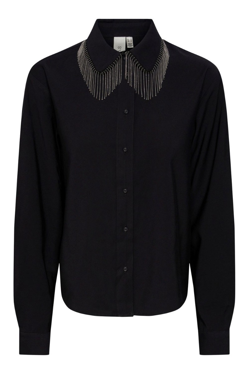 Y.A.S - Skjorte - YAS Frima Fringe LS Shirt S. - Black