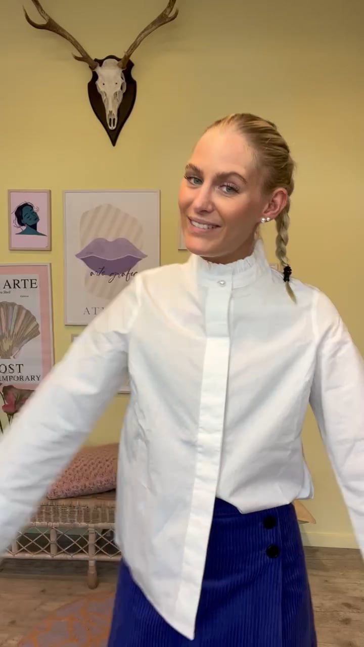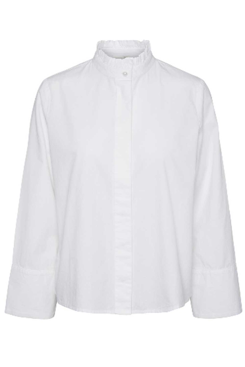En hvid skjorte er ikke bare en hvid skjorte og derfor skal du altså lige se denne smukke sag fra Y.A.S. Skjorten har et løst snit med brede ærmer og en sød flæsekant ved kraven der lukkes med skjulte knapper foran. De lange brede ærmer har to små perlemorsknapper ved håndleddet der giver et meget feminint og elegant udtryk og derfor er anvendelig til fest også.