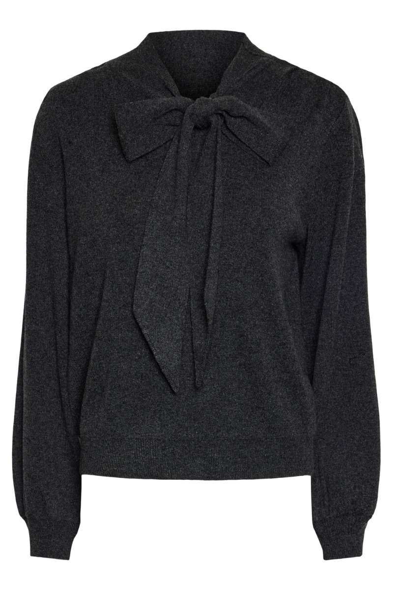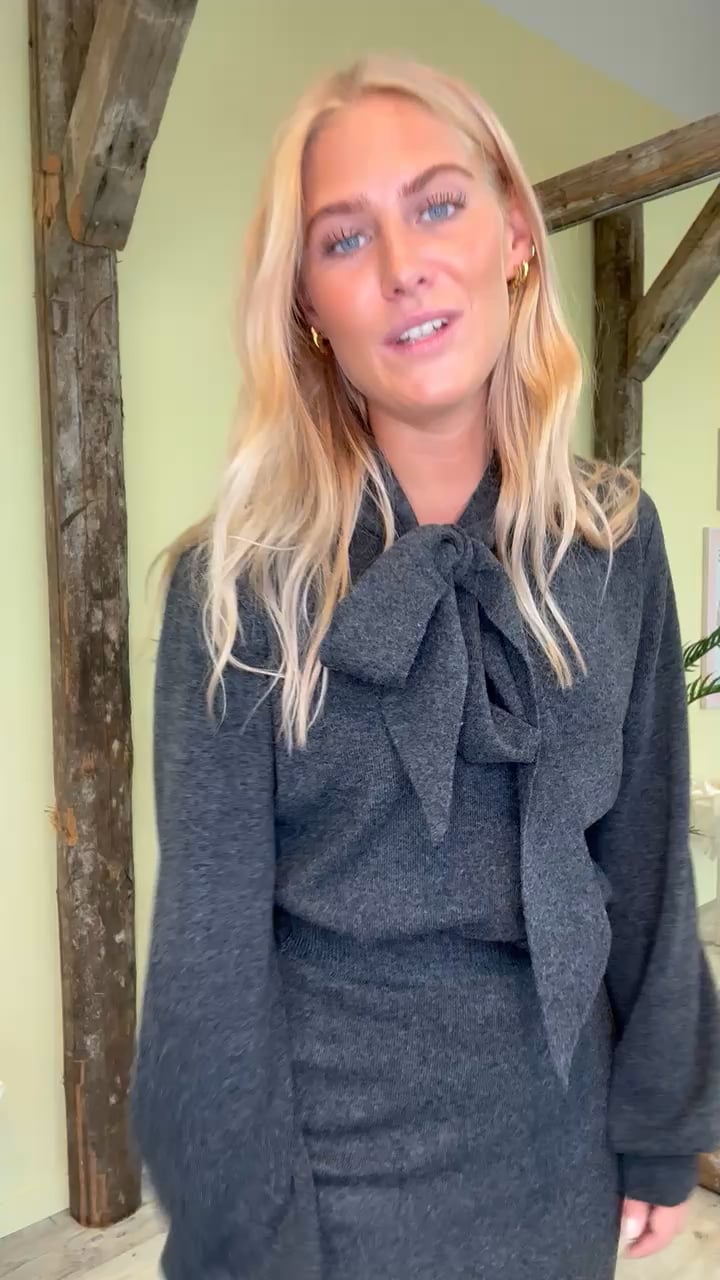 En virkelig fin strik er landet fra Y.A.S. Denne strik er dejlig let i kvaliteten, og så har den en bindebåndsdetalje i halsen, som lige giver dét ekstra!