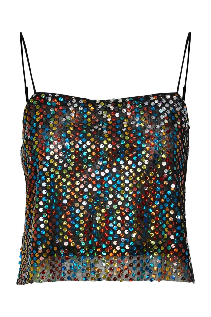 Y.A.S - Top - YAS Noelle Sequin Crop Strap Top Fest - Black/Sequin