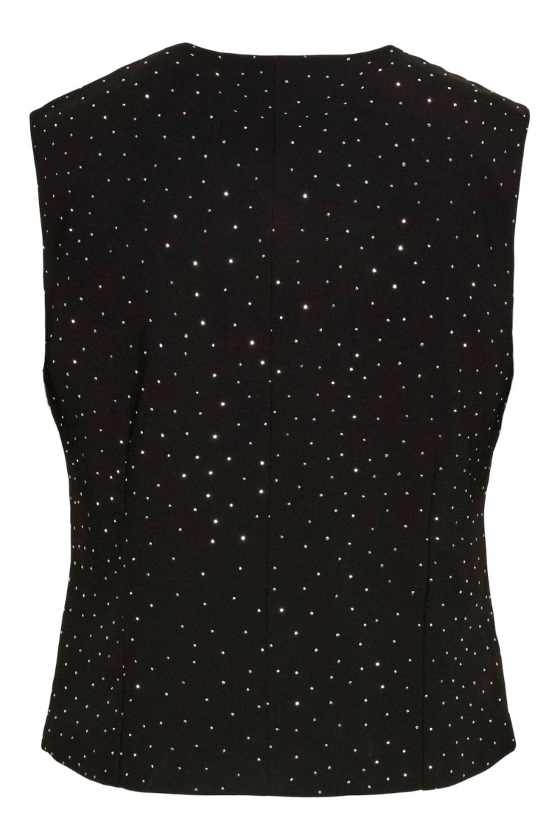 Ej ej ej se lige den sejeste vest fra Y.A.S. En klassisk habitvest i sort pyntet med glitrende sten for både et cool shiny og festlig look. Vesten er helt perfekt at style til den matchende nederdel for et fuldendt look, og ellers et par rå jeans for at mere dæmpet look.