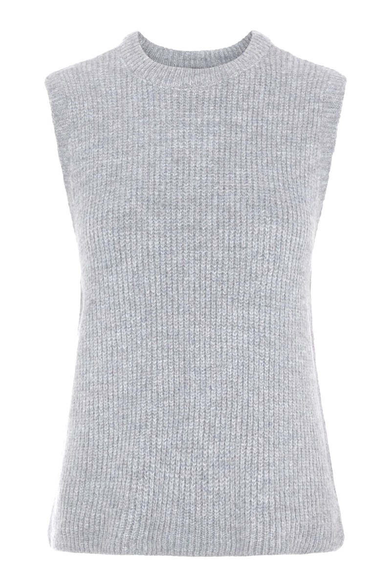 Sød vest fra Y.A.S i en lys grå med rund halsudskæring. Vesten er perfekt at style over en skjorte eller kjole for at skabe et mere afslappet look.
